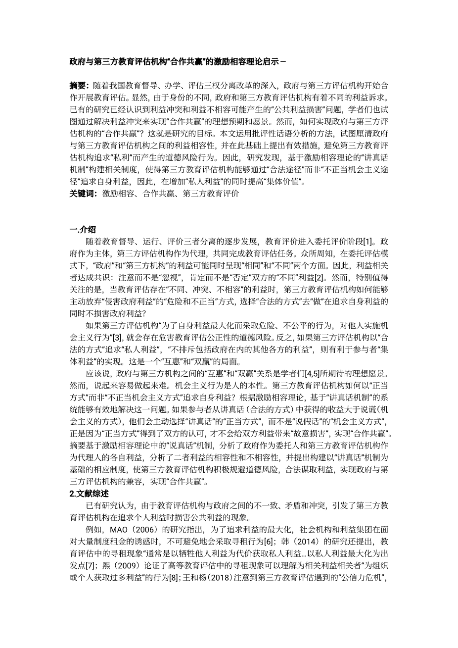 政府与第三方教育评估机构”合作共赢”的激励相容理论启示-外文翻译资料 2023-02-25 12:19:54 英语原文共 6 页,剩余内容已隐藏,支付完成后下载完整资料 英语译文共 5 页,剩余内容已隐藏,支付完成后下载完整资料 资料编号:[410454],资料为PDF文档或Word文档,PDF文档可免费转换为Word 您需要先支付 30元 才能查看全部内容!立即支付 发小红书推广免费获取该资料资格。点击链接进入获取推广文案即可: Ai一键组稿 | 降AI率 | 降重复率 | 论文一键排版 PREVIOUS NEXT 您可能感兴趣的文章 一种基于多调制格式的变速率接入网关键技术研究文献综述 基于有机薄膜调控无机钙盐的形成文献综述 微波快速加热表面材料强化开题报告 基于随机微分方法研究ICME引起的FD事件文献综述 流场成分对莫尔层析诊断的影响研究文献综述 PET误差随时间变化关系研究开题报告 相对论重离子碰撞中净质子数高阶矩与其误差开题报告 电场对材料带隙的调控文献综述 红外二极管泵浦条件下Yb、Ho:GGG逐步上转换的可见-近红外发光外文翻译资料 高中物理学中自我效能状态的性别差异外文翻译资料