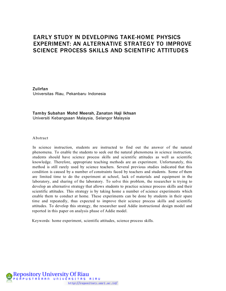 开发带回家物理实验的早期研究:提高科学过程技能和科学态度的替代策略外文翻译资料