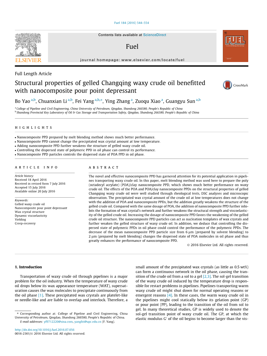 凝胶长庆蜡质原油的结构性能受益于纳米复合倾点下降剂外文翻译资料