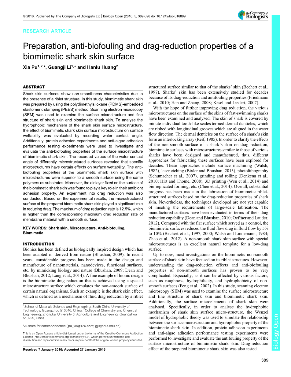 鲨鱼皮表面防生物结垢和减阻性能外文翻译资料
