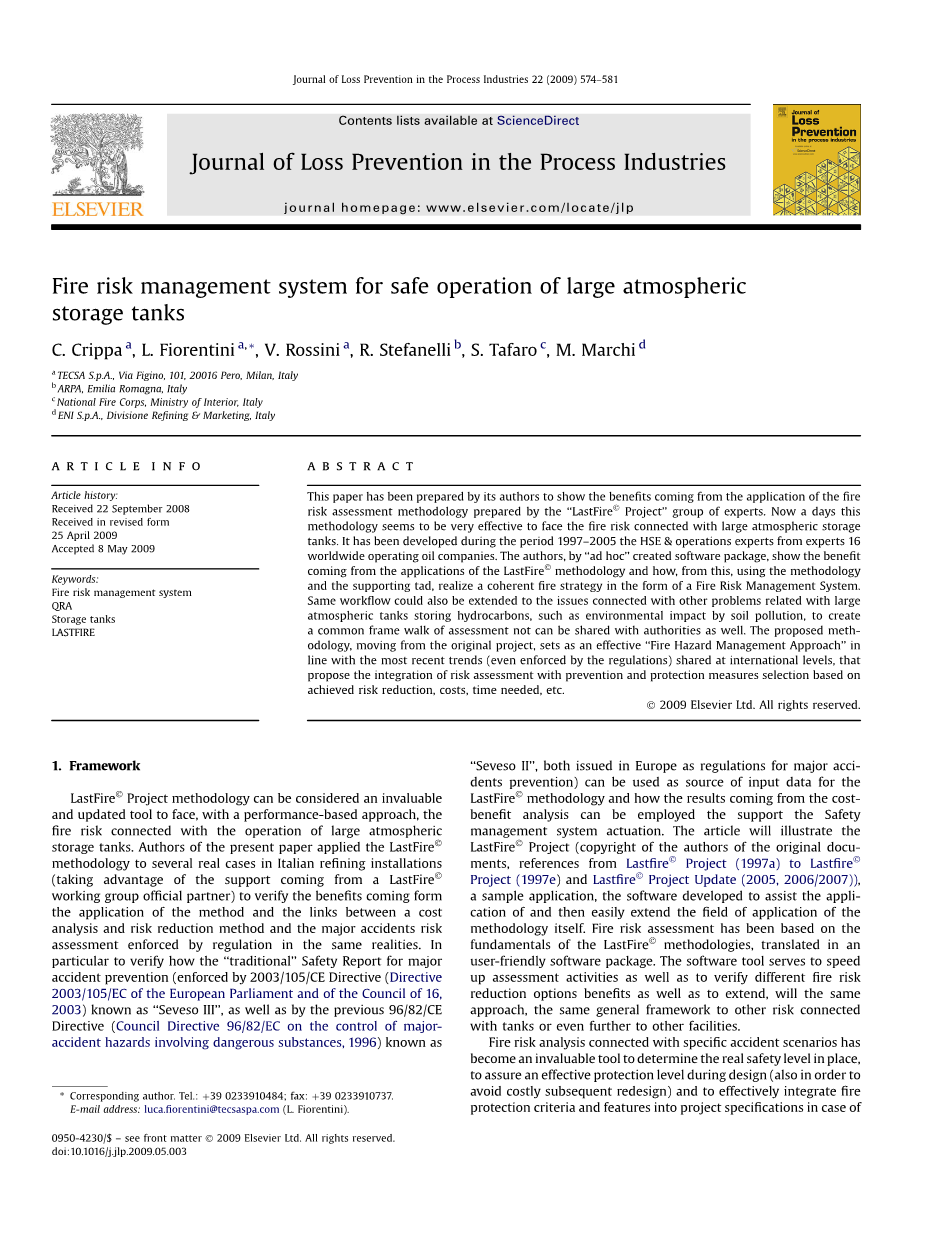随着性能化设计,对与大型常压储罐操作相关的火灾风险,LastFire 项目方法可以当作是一种宝贵和更新的工具。本文的作者应用了LastFire 方法在意大利炼油装置的几个真实情况(利用了来自LastFire工作组官方合作伙伴的支持),以验证方法应用、成本分析和风险降低之间的联系以及在相同实际中由法规强制执行的重大事故风险评估中带来的好处。特别是为了验证“传统的”重大事故预防安全报告(由2003/105 / CE指令(2003年10月16日欧洲议会和理事会的指令2003/105 / EC强制执行) Seveso III“,以及被称为”Seveso II“的先前的96/82 / CE指令(关于控制涉及危险物质的主要危害的理事会指令96/82 / EC,1996) 作为重大事故预防的法规)可以作为LastFire方法的输入的数据源及如何利用成本效益分析的结果支持安全管理系统的使用。