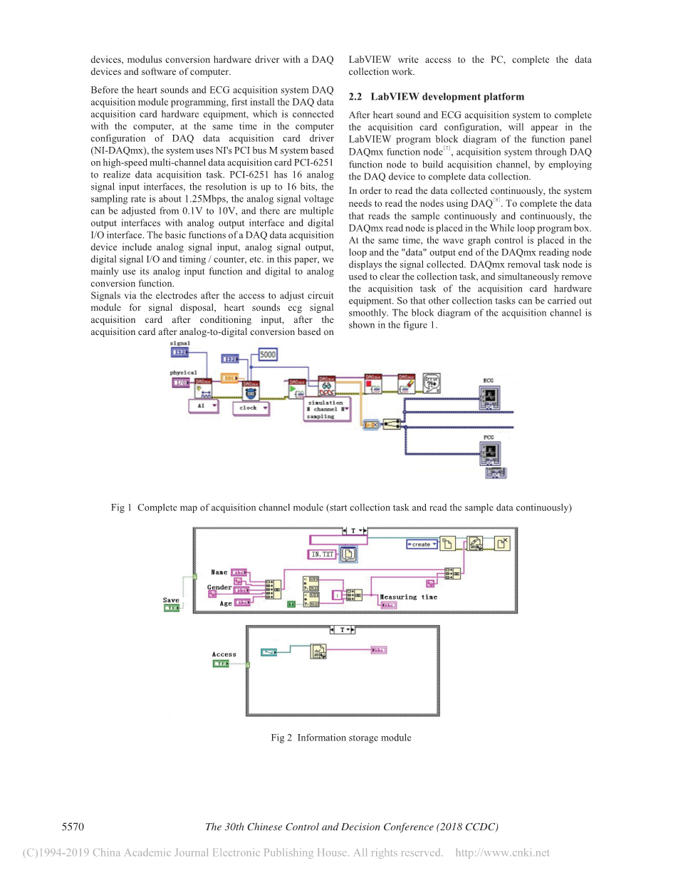 通过传感器连接信号后,通过访问调整电路模块[5]调整信号。在调节后进入采集卡后,基于LabVIEW将心音和ECG信号连接到主机,完成数据采集。为了实现信号采集和数字化,需要建立信号采集通道。计算机数字转换工具是PCI-6251数据采集卡。采集系统通过DAQ数据采集卡驱动实现采集卡的使用。数据采集(DAQ)技术用于获取被测对象的数据。该技术通过数据采集设备从传感器和其他未经测试的设备获取和转换物理信号(如电压,电流,压力和温度等)[6]。可以使用基于计算机的数据采集过程,包括传感器,模拟信号调理硬件设备,具有DAQ设备的模数转换硬件驱动器和计算机软件。
