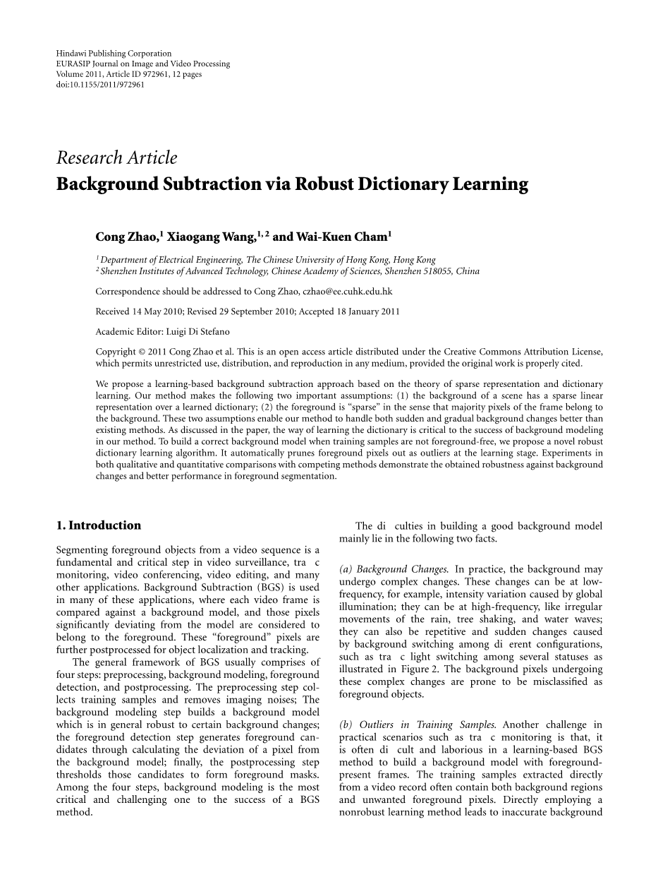 Cong Zhao,1 Xiaogang Wang,1, 2 and Wai-Kuen Cham1