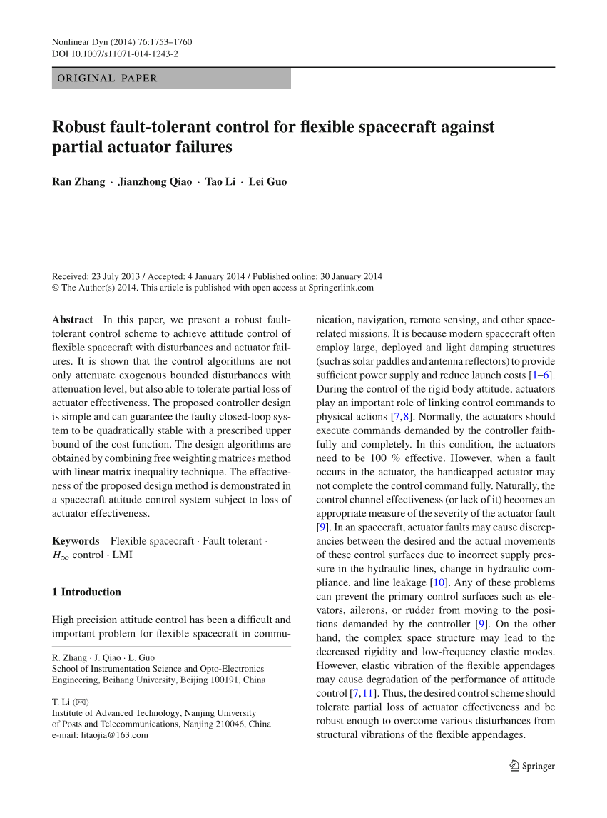 1. Nagashio, T., Kida, T., Ohtani, T., Hamada, Y.: Design and implementation of robust symmetri控制 attitude 控制ontroller for ETS-VIII spa控制e控制ra容错. 控制ontrol Eng. Pra控制t. 18(12), 1440–1451 (2010)