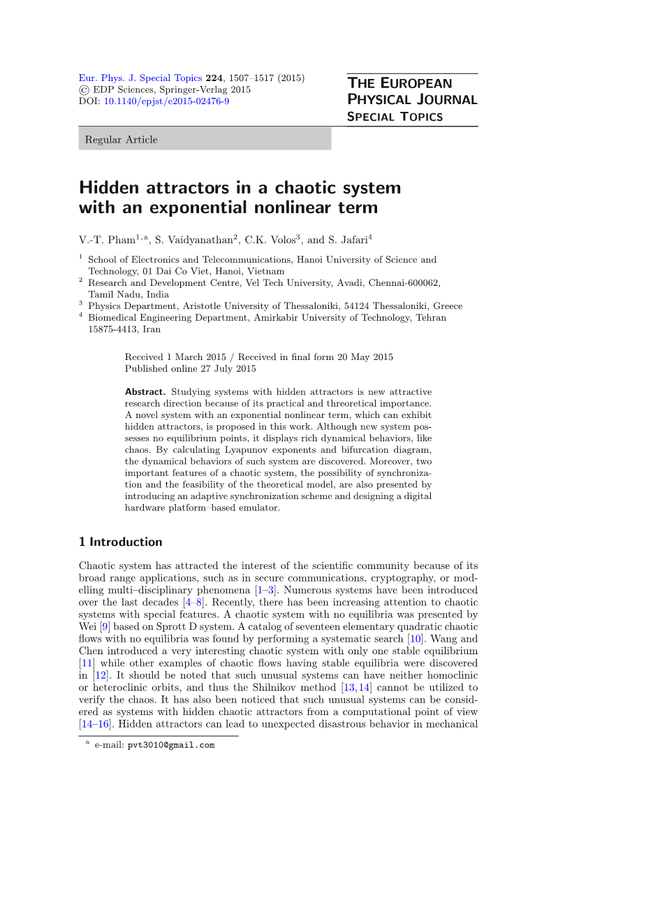 V.-T. Pham 1,a , S. Vaidyanathan 2 , C.K. Volos 3 , and S. Jafari 4