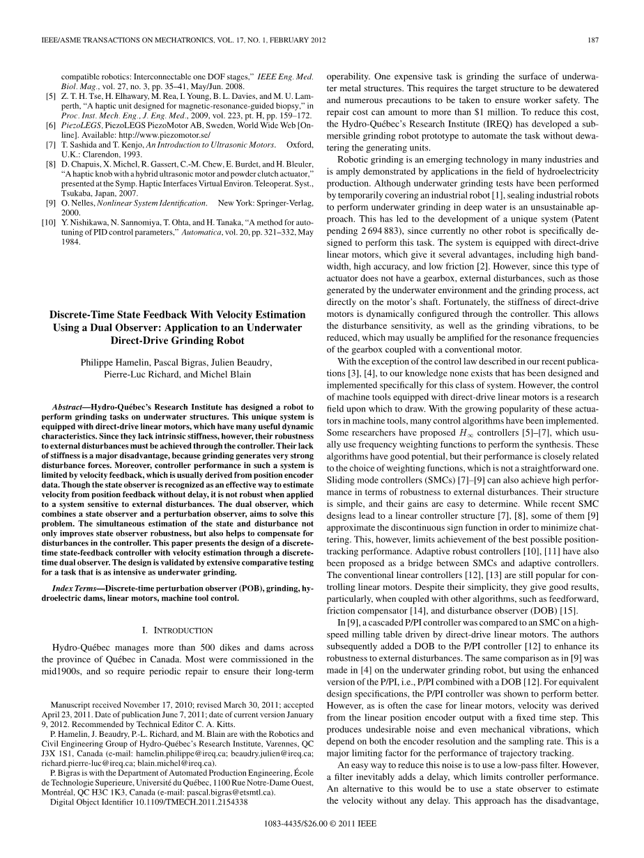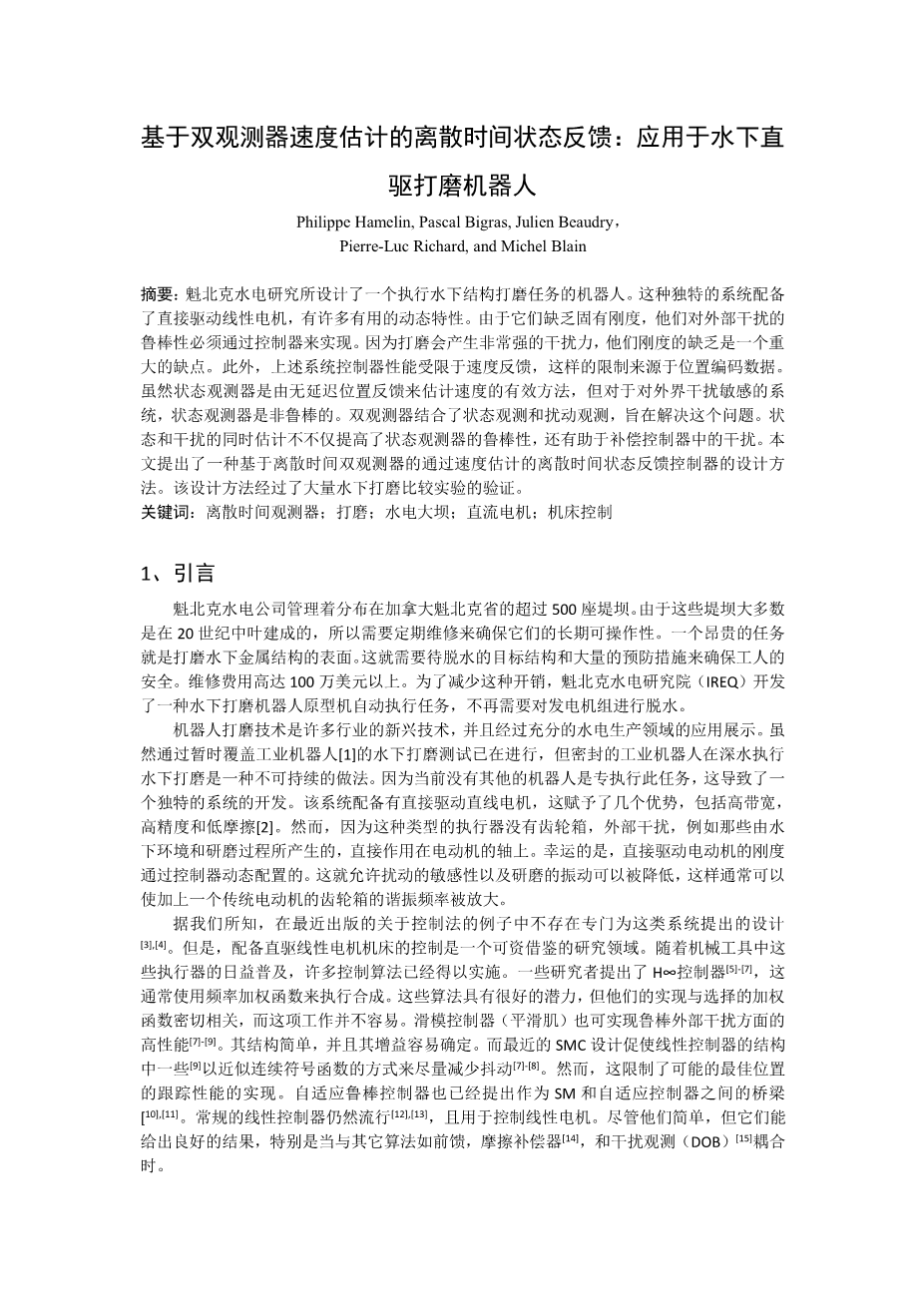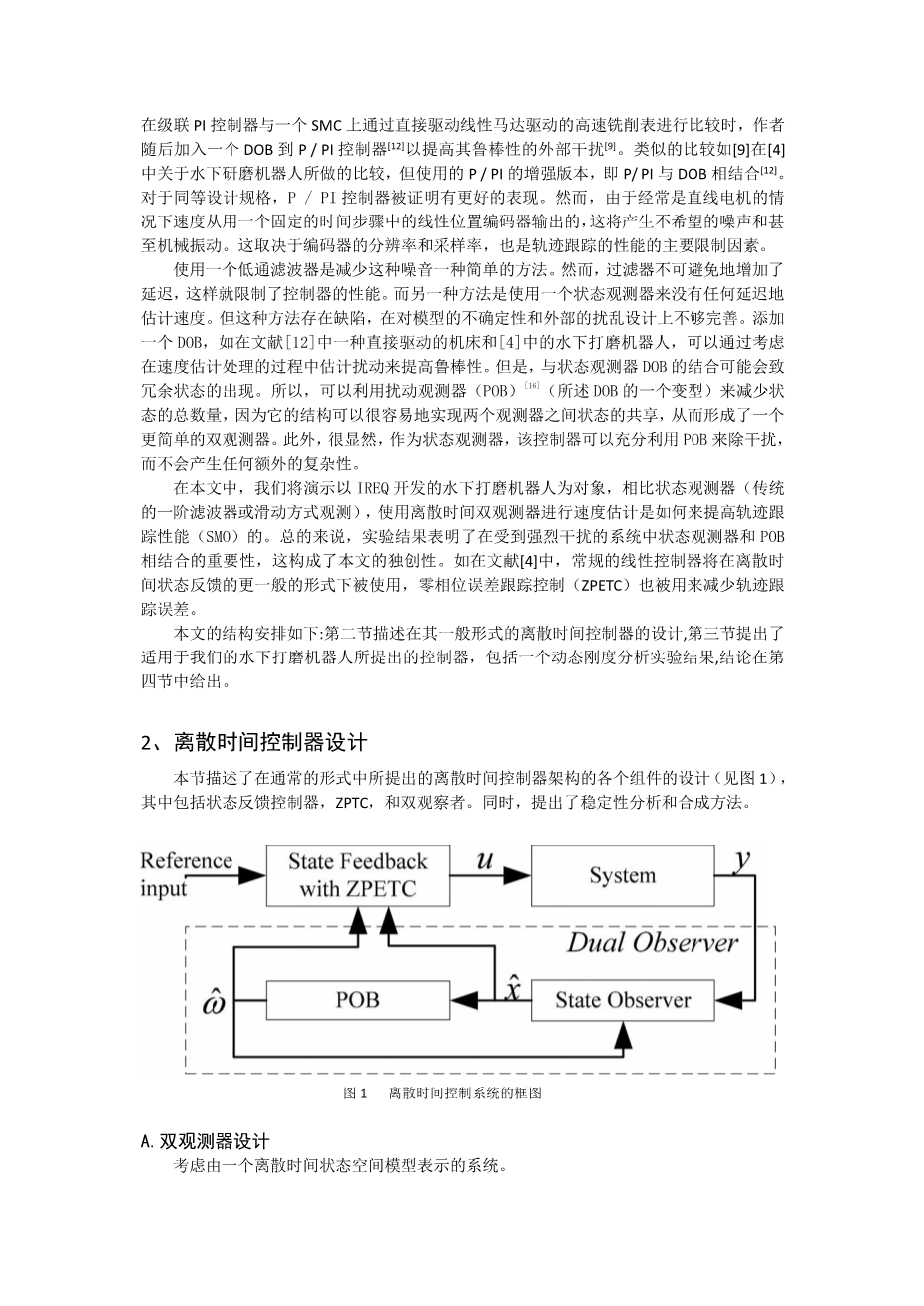 基于双观测器速度估计的离散时间状态反馈:应用于水下直驱打磨机器人外文翻译资料 2023-02-11 13:00:14 英语原文共 5 页,剩余内容已隐藏,支付完成后下载完整资料 英语译文共 15 页,剩余内容已隐藏,支付完成后下载完整资料 资料编号:[32214],资料为PDF文档或Word文档,PDF文档可免费转换为Word 您需要先支付 30元 才能查看全部内容!立即支付 发小红书推广免费获取该资料资格。点击链接进入获取推广文案即可: Ai一键组稿 | 降AI率 | 降重复率 | 论文一键排版 PREVIOUS NEXT 您可能感兴趣的文章 一类非线性DAE系统的状态观测器设计文献综述 基于计算机视觉技术的足球运动轨迹分析文献综述 Car-bus汽车组合出行系统研究文献综述 基于ADAMS虚拟样机的仿生机械臂控制研究开题报告 带扰动的离散时间系统的滑模变结构控制分析与设计文献综述 基于单片机的自动分拣机设计文献综述 欧氏双曲面上的一致性算法研究文献综述 基于PLC与机器视觉的图像绘制开题报告 基于matlab的车牌识别系统开题报告 基于计算机视觉技术的足球运动轨迹分析开题报告