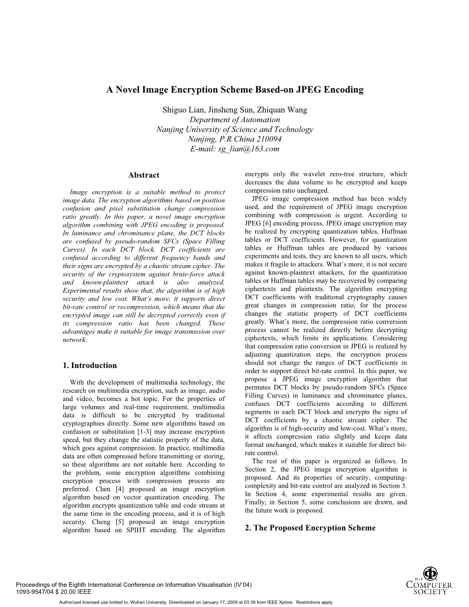 基于JPEG编码的图像加密创新方案外文翻译资料 2023-02-14 10:09:24 英语原文共 4 页,剩余内容已隐藏,支付完成后下载完整资料 英语原文共 8 页,剩余内容已隐藏,支付完成后下载完整资料 资料编号:[148196],资料为PDF文档或Word文档,PDF文档可免费转换为Word 您需要先支付 30元 才能查看全部内容!立即支付 发小红书推广免费获取该资料资格。点击链接进入获取推广文案即可: Ai一键组稿 | 降AI率 | 降重复率 | 论文一键排版 PREVIOUS NEXT 您可能感兴趣的文章 一类非线性DAE系统的状态观测器设计文献综述 基于计算机视觉技术的足球运动轨迹分析文献综述 Car-bus汽车组合出行系统研究文献综述 基于ADAMS虚拟样机的仿生机械臂控制研究开题报告 带扰动的离散时间系统的滑模变结构控制分析与设计文献综述 基于单片机的自动分拣机设计文献综述 欧氏双曲面上的一致性算法研究文献综述 基于PLC与机器视觉的图像绘制开题报告 基于matlab的车牌识别系统开题报告 基于计算机视觉技术的足球运动轨迹分析开题报告