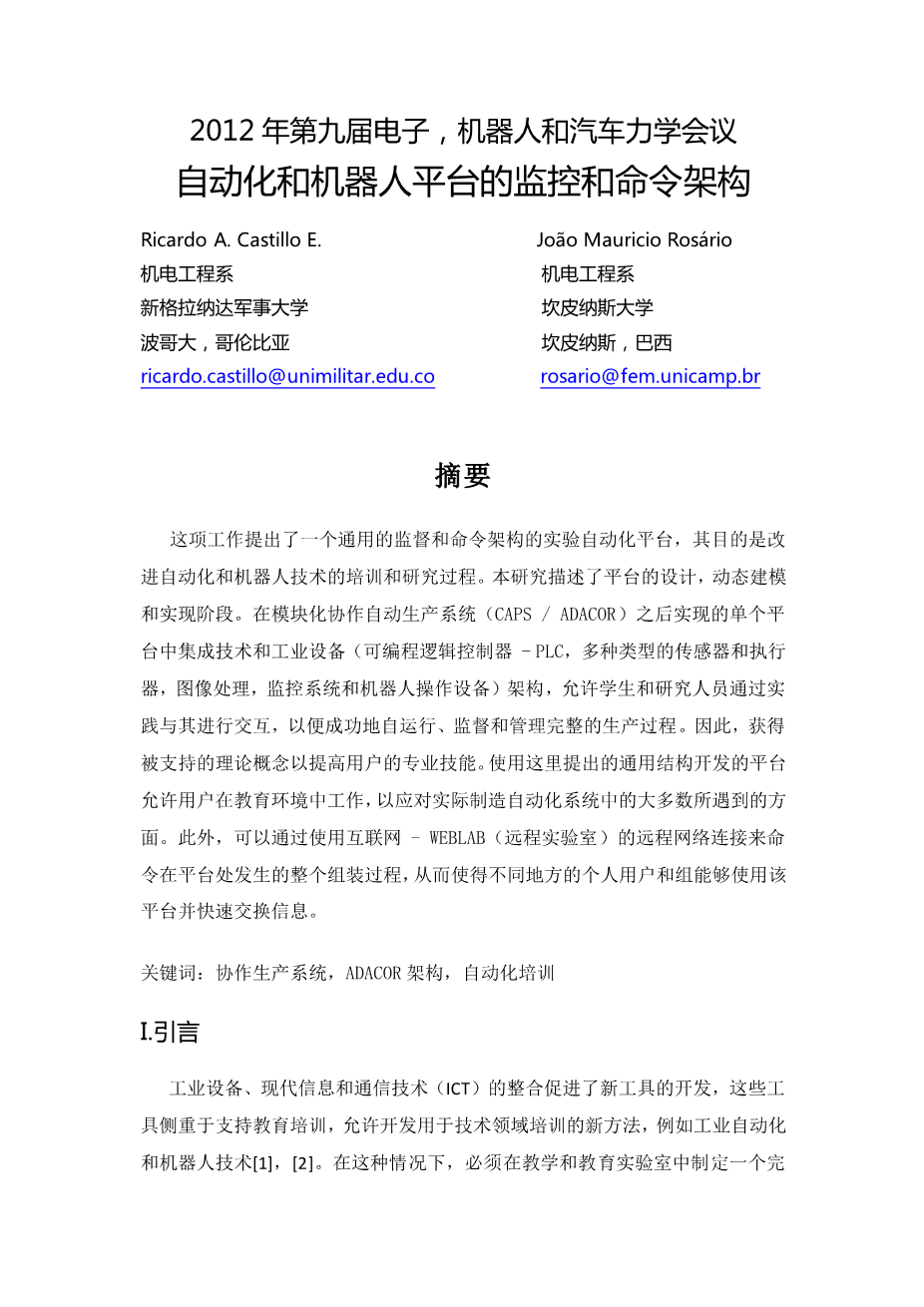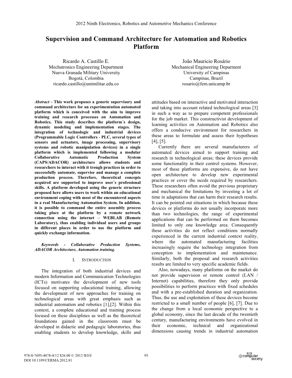 自动化和机器人平台的监控和命令架构外文翻译资料 2023-02-17 09:38:23 英语原文共 8 页,剩余内容已隐藏,支付完成后下载完整资料 英语原文共 15 页,剩余内容已隐藏,支付完成后下载完整资料 资料编号:[138830],资料为PDF文档或Word文档,PDF文档可免费转换为Word 您需要先支付 30元 才能查看全部内容!立即支付 发小红书推广免费获取该资料资格。点击链接进入获取推广文案即可: Ai一键组稿 | 降AI率 | 降重复率 | 论文一键排版 PREVIOUS NEXT 您可能感兴趣的文章 一类非线性DAE系统的状态观测器设计文献综述 基于计算机视觉技术的足球运动轨迹分析文献综述 Car-bus汽车组合出行系统研究文献综述 基于ADAMS虚拟样机的仿生机械臂控制研究开题报告 带扰动的离散时间系统的滑模变结构控制分析与设计文献综述 基于单片机的自动分拣机设计文献综述 欧氏双曲面上的一致性算法研究文献综述 基于PLC与机器视觉的图像绘制开题报告 基于matlab的车牌识别系统开题报告 基于计算机视觉技术的足球运动轨迹分析开题报告