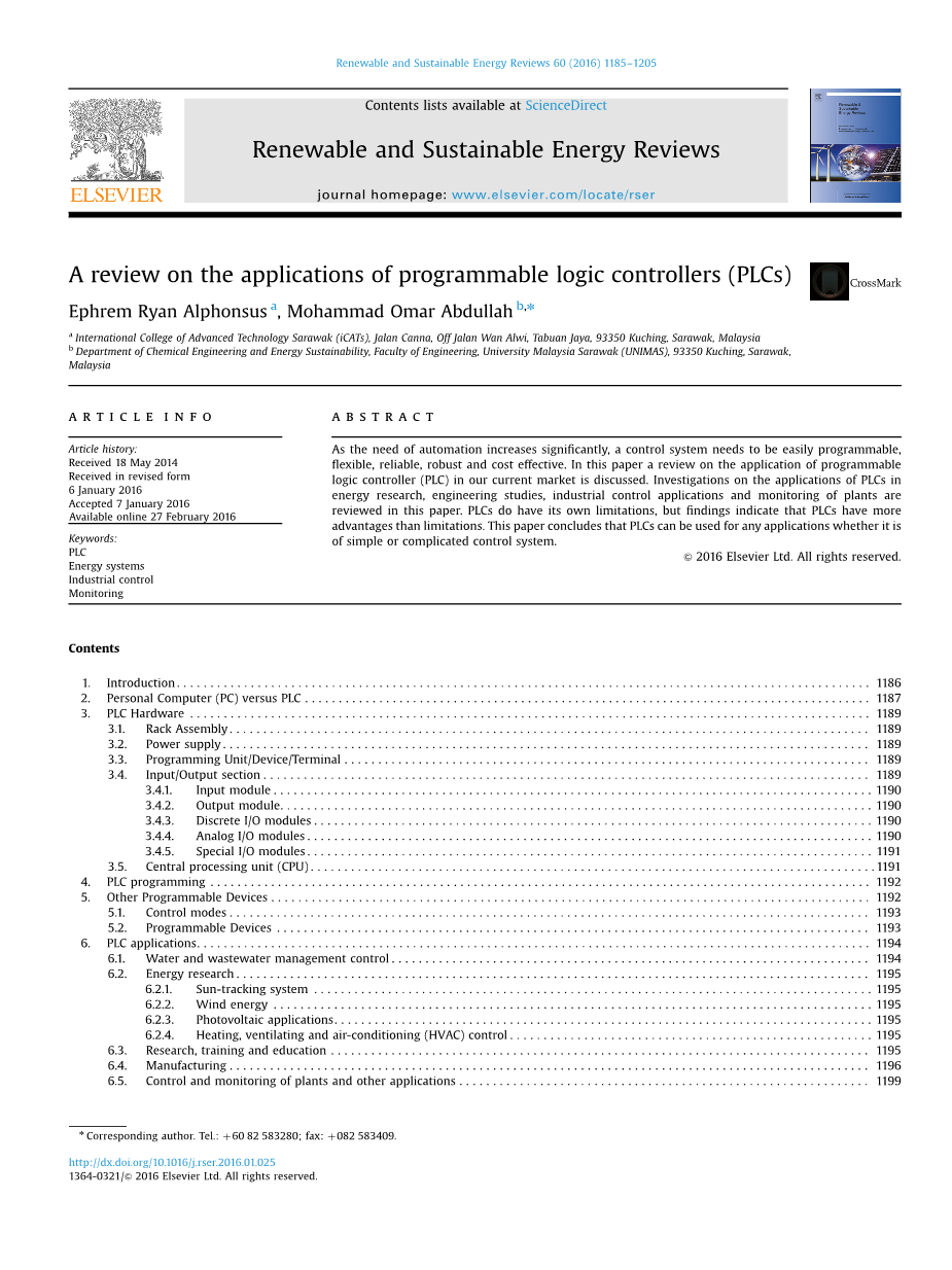 随着自动化的需求显着增加,控制系统需要易于编程,灵活,可靠,稳健且具有成本效益。 在本文中,讨论了可编程逻辑控制器(PLC)在当前市场中的应用。 本文回顾了PLC在能源研究,工程研究,工业控制应用和植物监测中的应用调查。 PLC有自己的局限性,但发现表明PLC具有比限制更多的优点。 本文的结论是PLC可以用于任何应用,无论是简单还是复杂的控制系统。