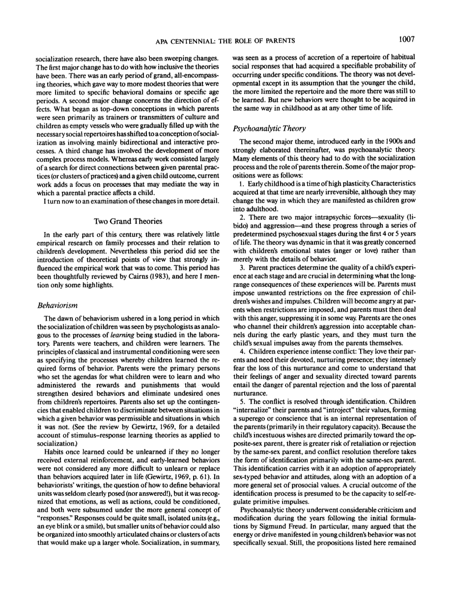 在本世纪初,对家庭过程及其与儿童发展的关系的实证研究相对较少。然而,这一时期的确看到了理论观点的引入,这强烈地影响了即将到来的实证工作。这段时间经过了凯恩斯的深思熟虑,这里我只提到了一些亮点。