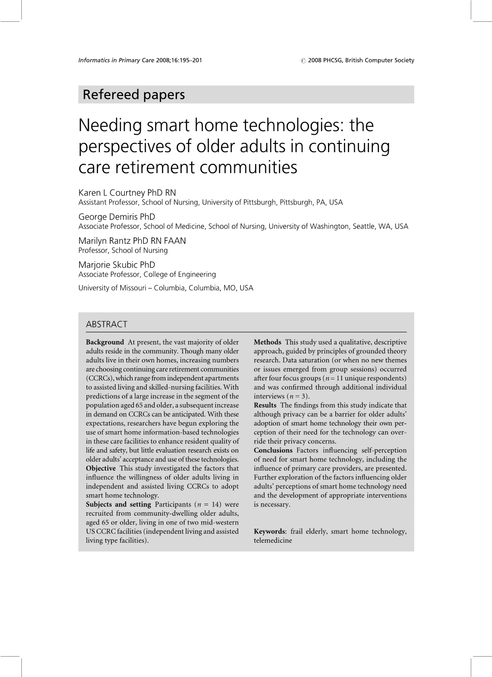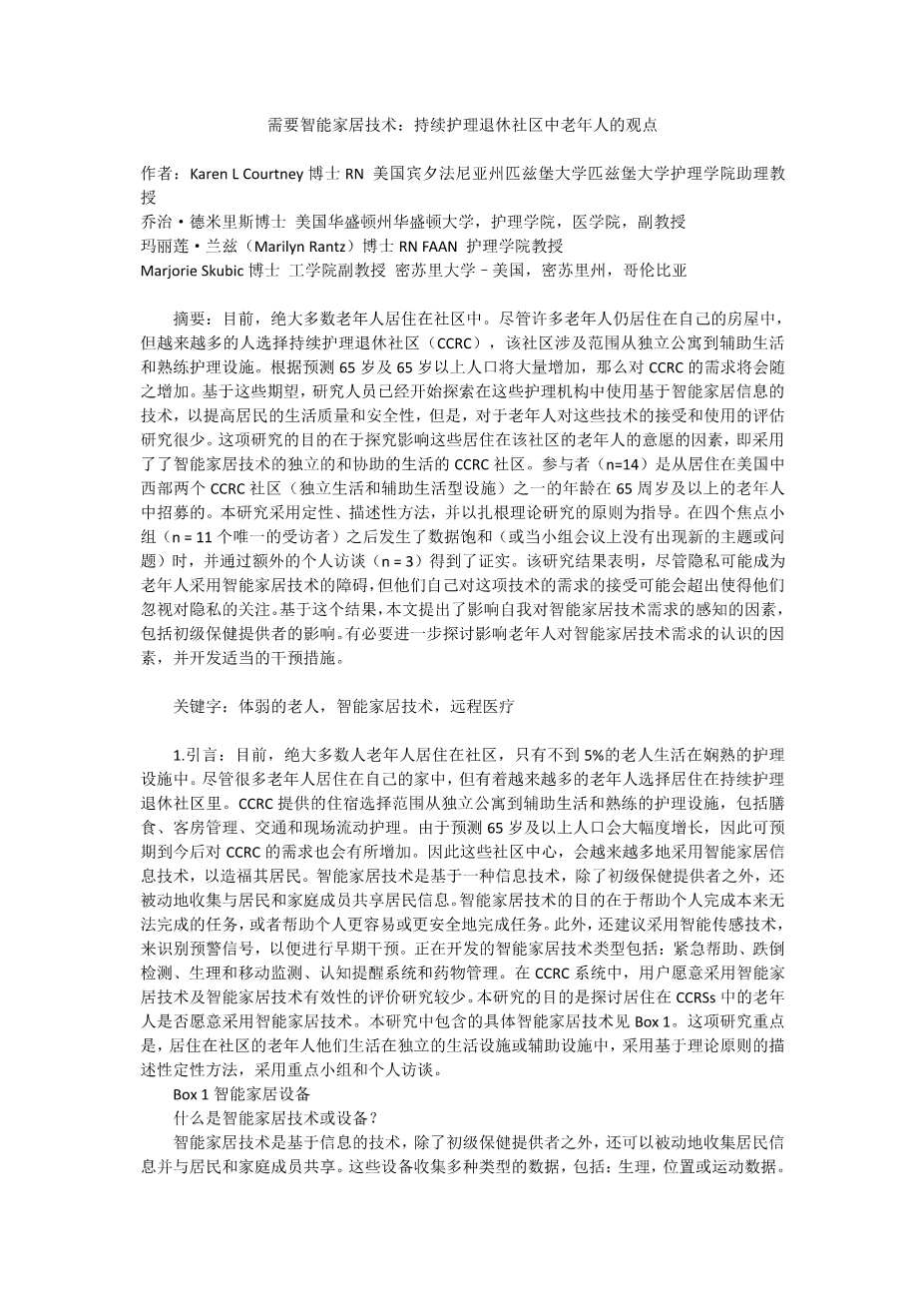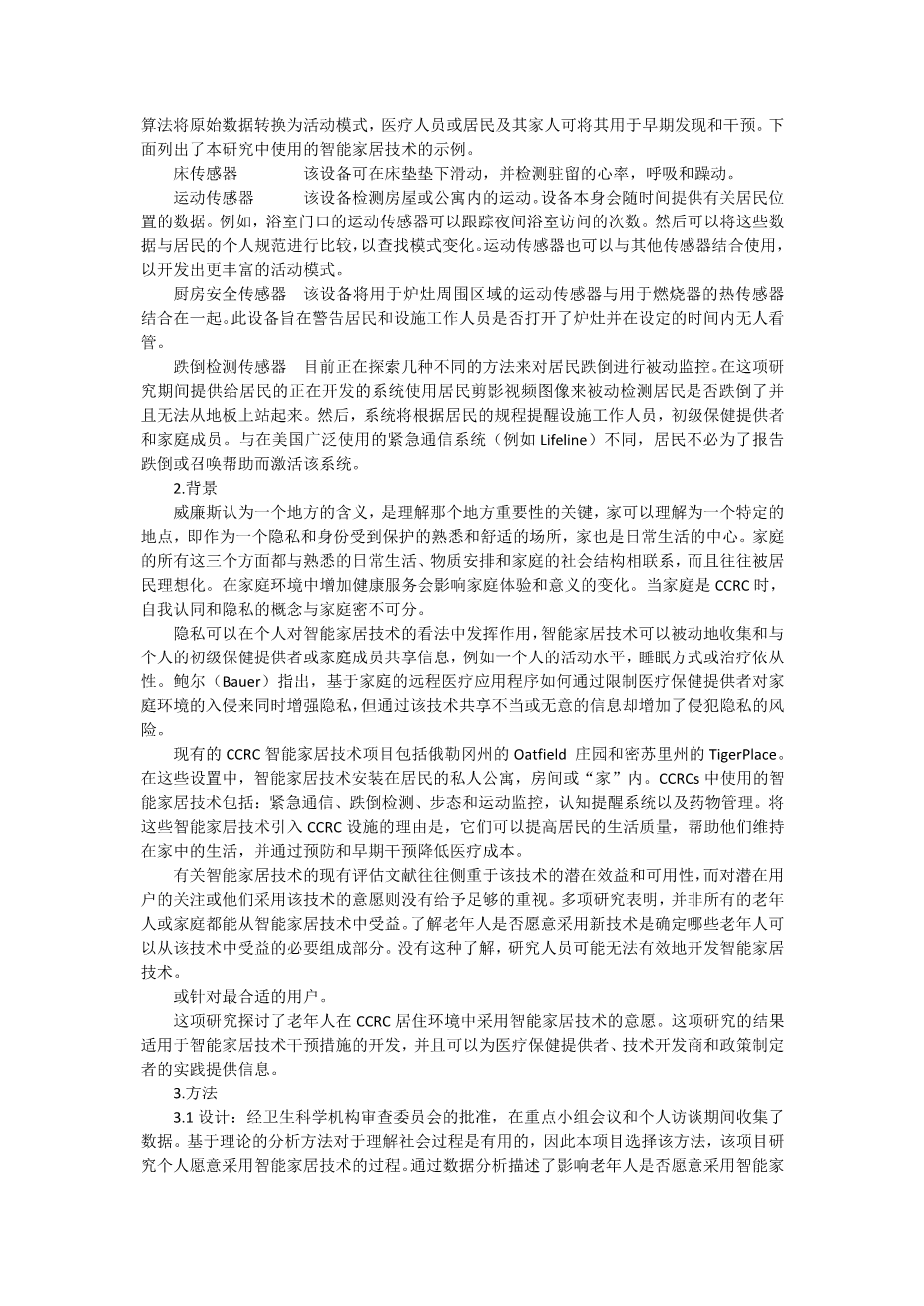需要智能家居技术:持续护理退休社区中老年人的观点外文翻译资料 2023-02-17 09:49:18 英语原文共 8 页,剩余内容已隐藏,支付完成后下载完整资料 英语译文共 5 页,剩余内容已隐藏,支付完成后下载完整资料 资料编号:[412107],资料为PDF文档或Word文档,PDF文档可免费转换为Word 您需要先支付 30元 才能查看全部内容!立即支付 发小红书推广免费获取该资料资格。点击链接进入获取推广文案即可: Ai一键组稿 | 降AI率 | 降重复率 | 论文一键排版 PREVIOUS NEXT 您可能感兴趣的文章 青少年犯罪与社会工作介入文献综述 婚内出轨的社会学分析文献综述 中国社会组织介入贫困儿童学前教育的路径研究开题报告 社会化养老的模式与路径开题报告 “合理化”的项目目标偏离:公益品牌塑造与利益妥协开题报告 欧洲老年人的孤独感:福利制度的比较研究外文翻译资料 就业对60-80岁人群主观幸福感的影响外文翻译资料 新时代背景下燕山-太行山扶贫干部精神研究外文翻译资料 灵活就业关系的法律和政策影响外文翻译资料 力量和压力:正面和负面的泰国的老年护理人员外文翻译资料