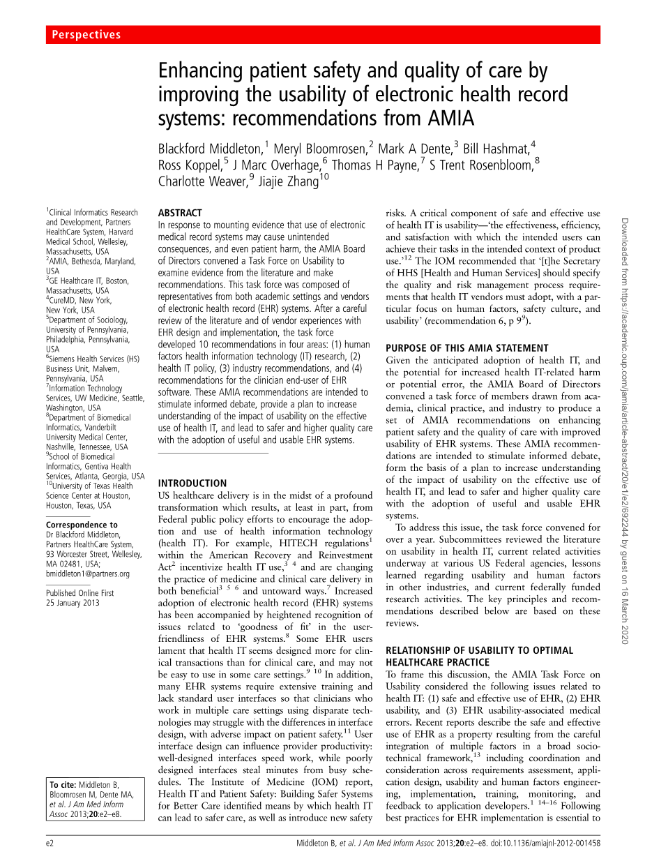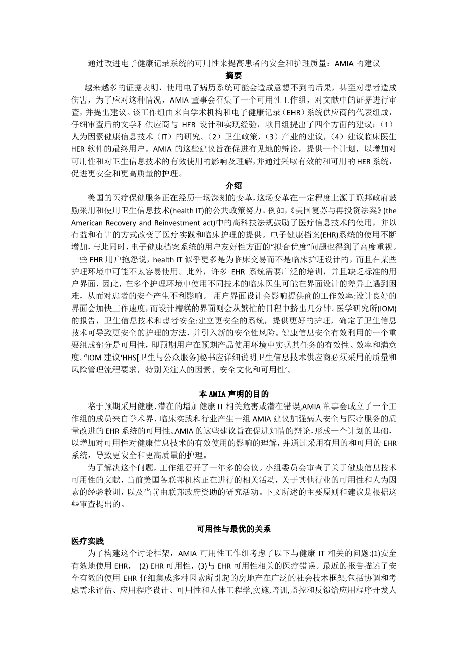 通过改进电子健康记录系统的可用性来提高患者的安全和护理质量: AMIA 的建议外文翻译资料