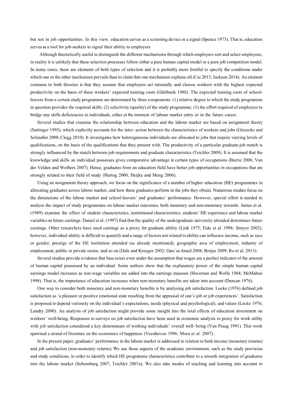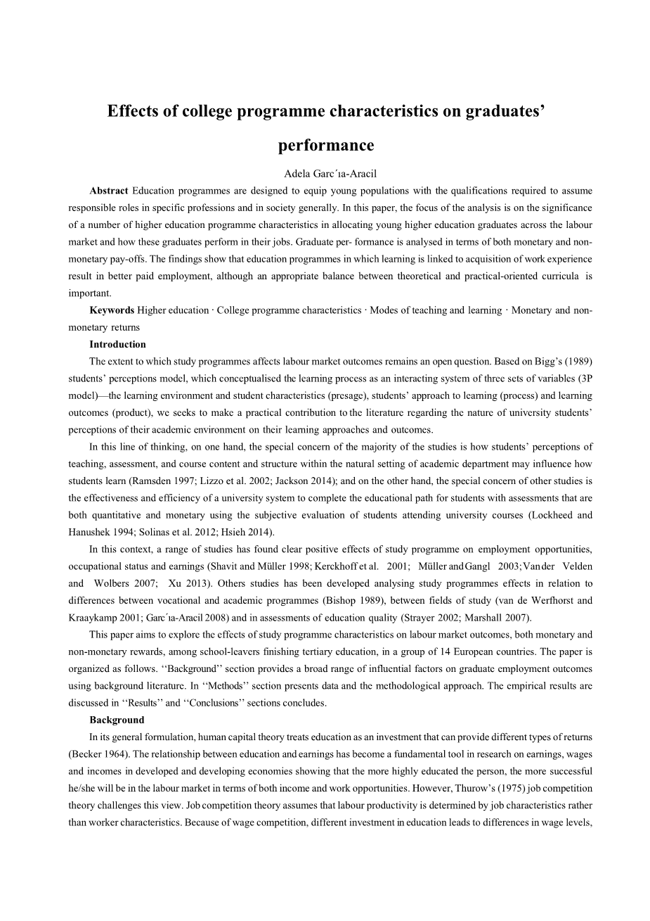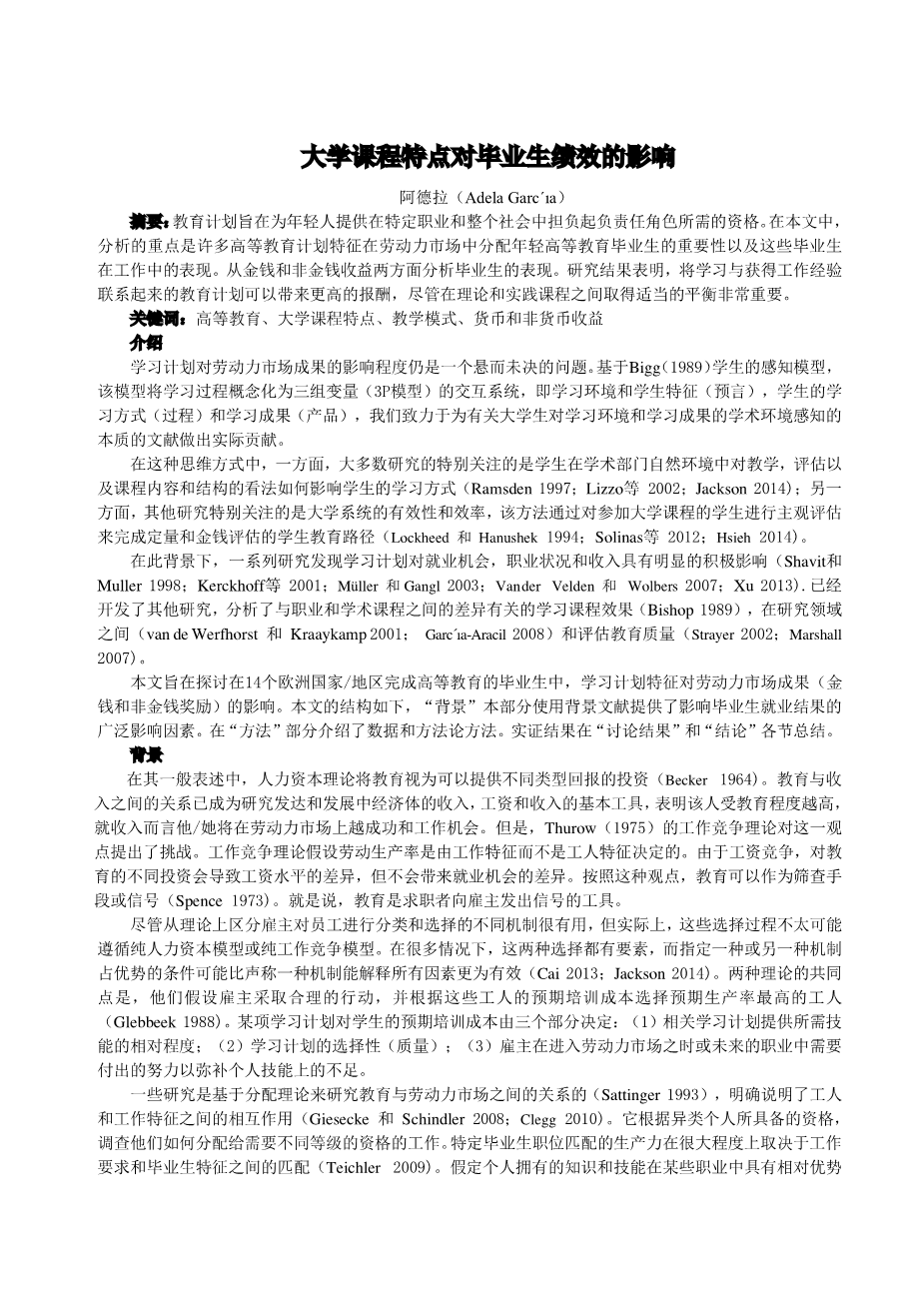 大学课程特点对毕业生绩效的影响外文翻译资料