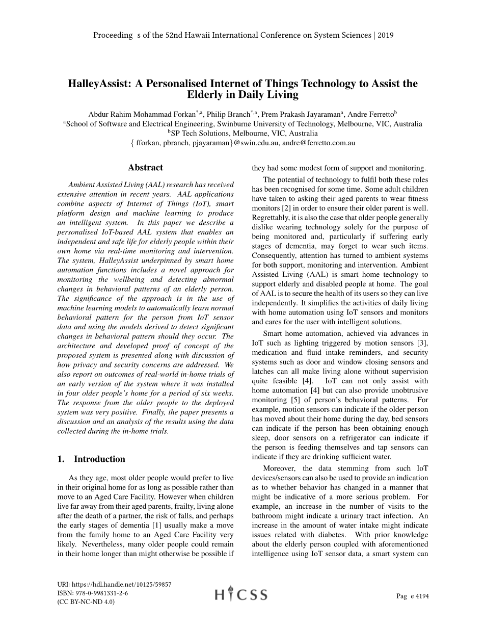 HalleyAssist:帮助老年人日常生活的个性化物联网技术外文翻译资料