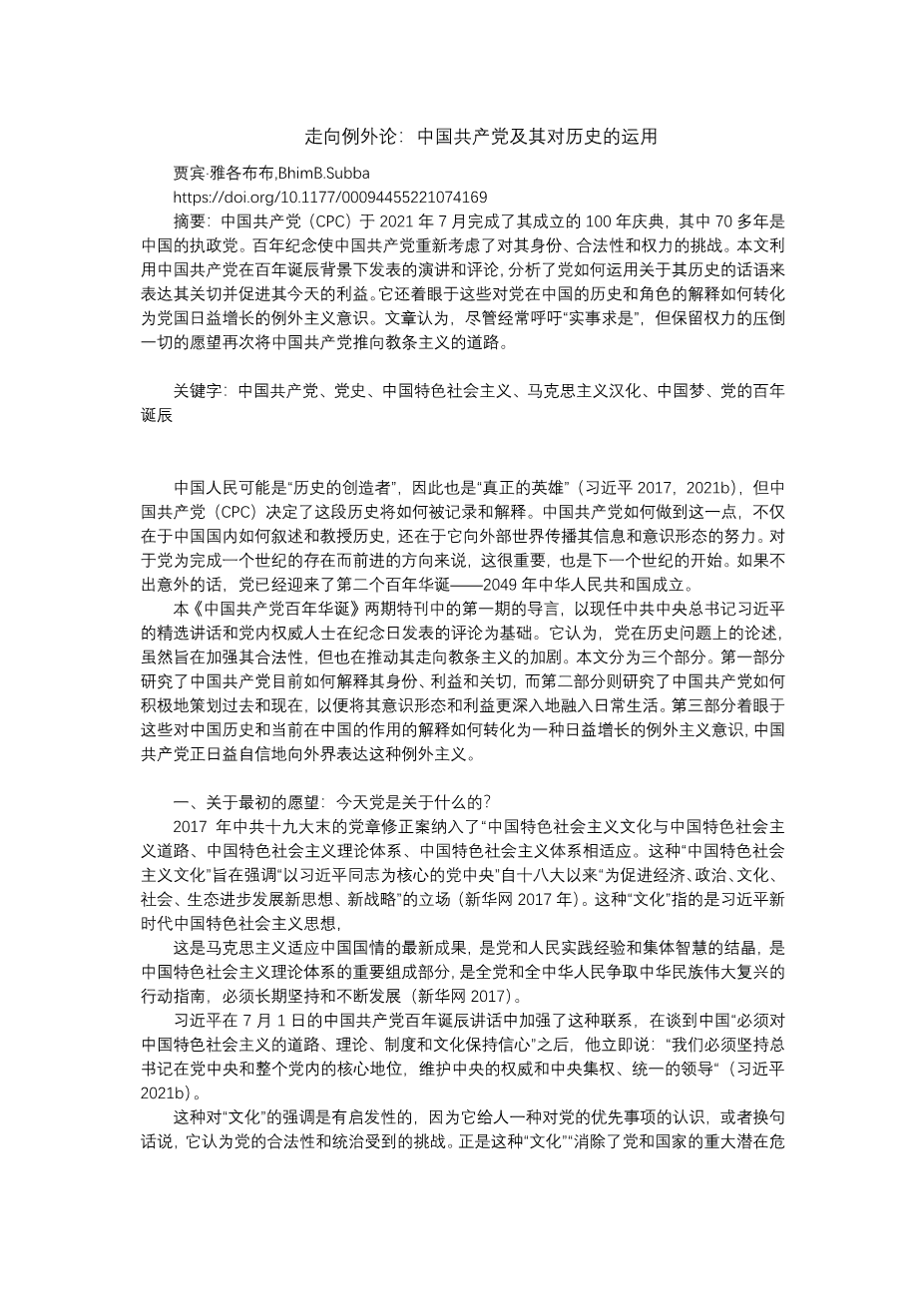 走向例外论:中国共产党及其对历史的运用外文翻译资料 2023-05-17 09:54:57 英语原文共 21 页,剩余内容已隐藏,支付完成后下载完整资料 英语译文共 8 页,剩余内容已隐藏,支付完成后下载完整资料 资料编号:[591249],资料为PDF文档或Word文档,PDF文档可免费转换为Word 您需要先支付 30元 才能查看全部内容!立即支付 发小红书推广免费获取该资料资格。点击链接进入获取推广文案即可: Ai一键组稿 | 降AI率 | 降重复率 | 论文一键排版 PREVIOUS NEXT 您可能感兴趣的文章 XX市(县)精准扶贫政策执行力提升策略研究文献综述 农民工子女教育融入问题研究开题报告 改革开放以来中国共产党加强党员党性修养的做法及其主要经验研究开题报告 个人奋斗:人格和主观幸福的研究方法外文翻译资料 走向例外论:中国共产党及其对历史的运用外文翻译资料 世界道德观的演变与中国学校道德教育外文翻译资料 学校道德教育:墨守成规还是自治?外文翻译资料 教育戏剧对生活技能和反思性思维的影响外文翻译资料 邢子与荀子对自然的认识外文翻译资料 中学生对数字互动教育活动的偏好的国际研究——用于促进心理健康和心理健康外文翻译资料
