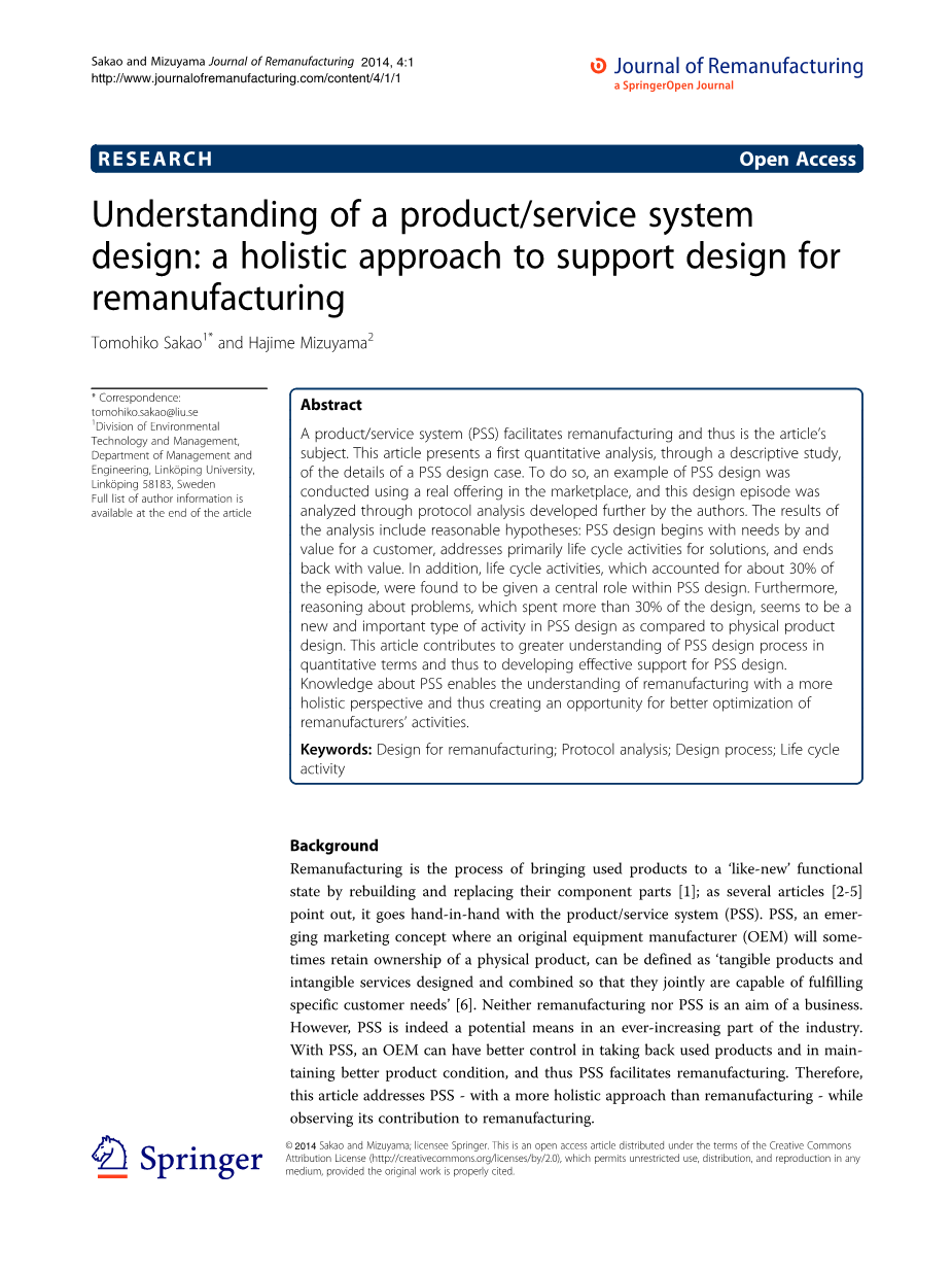 产品/服务系统(PSS)有助于再制造,因此这是文章主体。 本文通过描述性的研究表达了PSS设计案例细节的第一定量分析。 为此,PSS设计案例的开展是基于在市场上使用真实的产品,而这个设计情景是通过作者进一步发展的协议分析进行解析。 分析的结果包括合理的假设:PSS设计以用户需求、为客户带来价值、处理生命周期活动的方案为起点,并以价值为结束点。 此外,生命周期活动占据了设计情景中的30%,在PSS设计中被发现有重要的作用。而且,关于问题的推理,超过了设计的30%,与物理产品相比之下,在PSS设计中似乎是成为了一种新的、重要类型的活动。 本文有助于更好地理解PSS设计定量化的过程,从而为PSS设计开发提供有效的支持。PSS的知识能够使我们用整体的观点去了解再制造设计,从而为再制造功能的最优化创造机会。