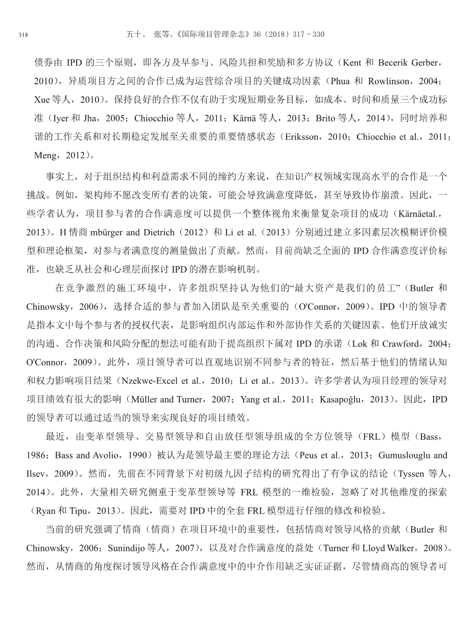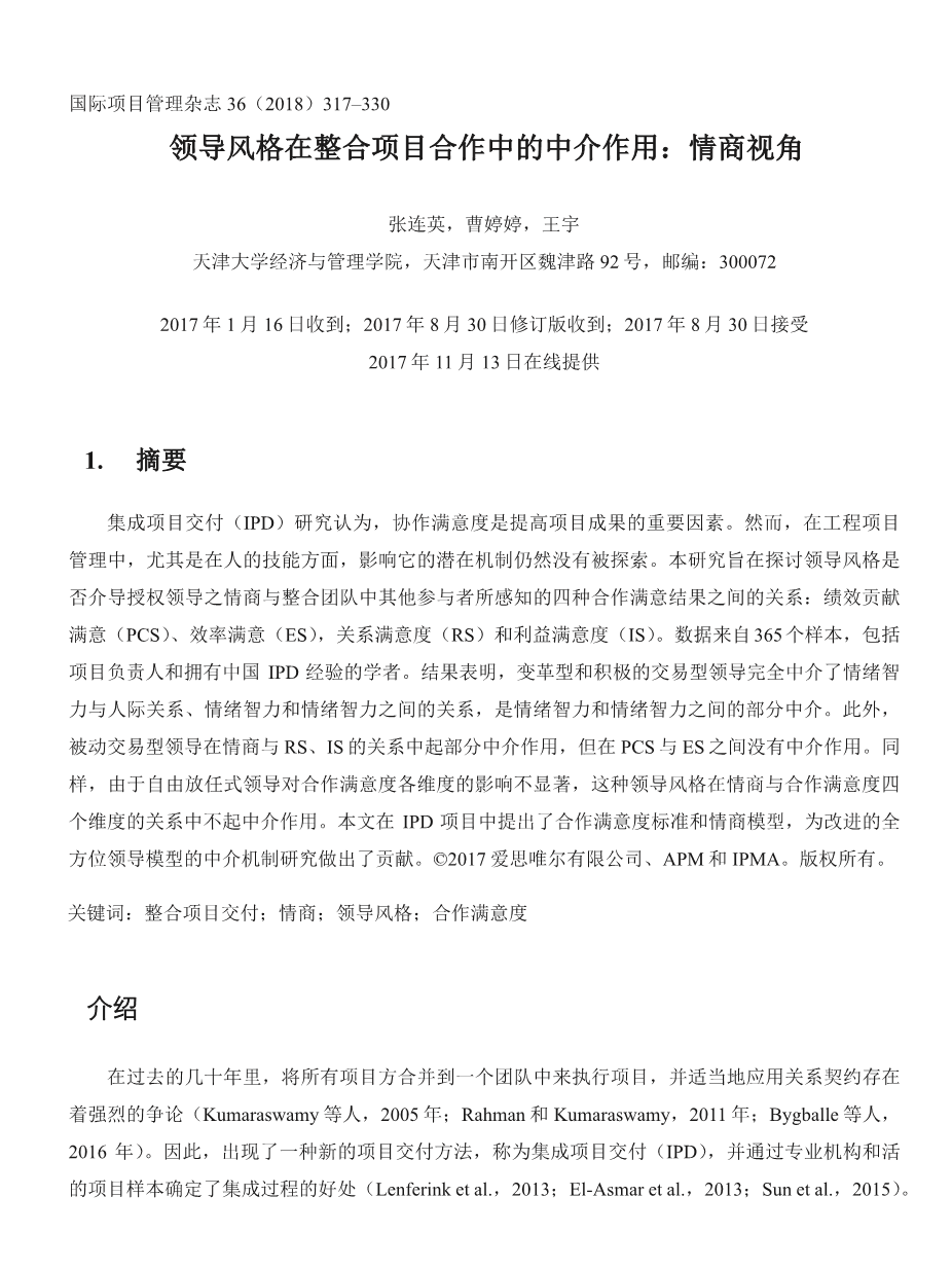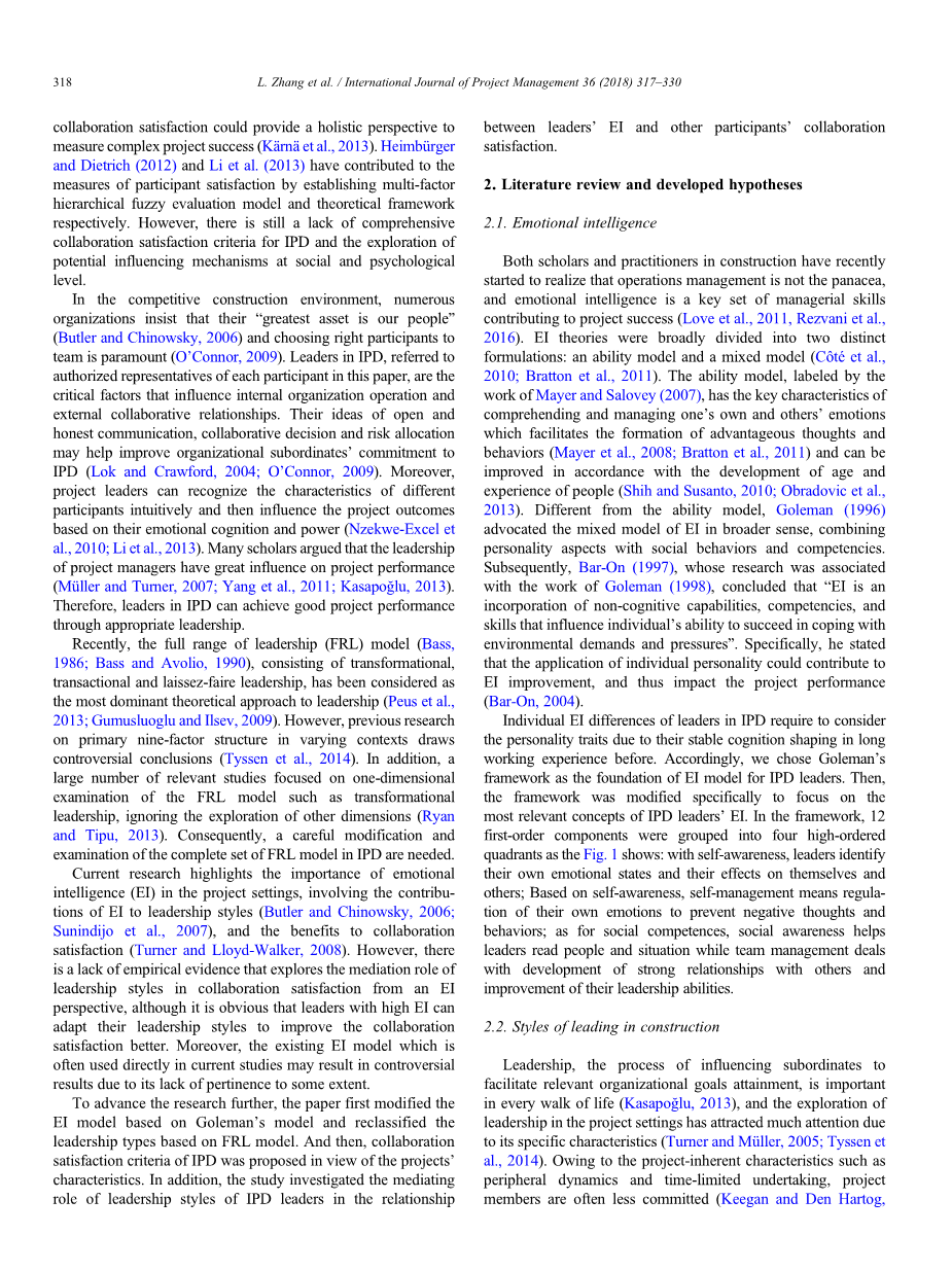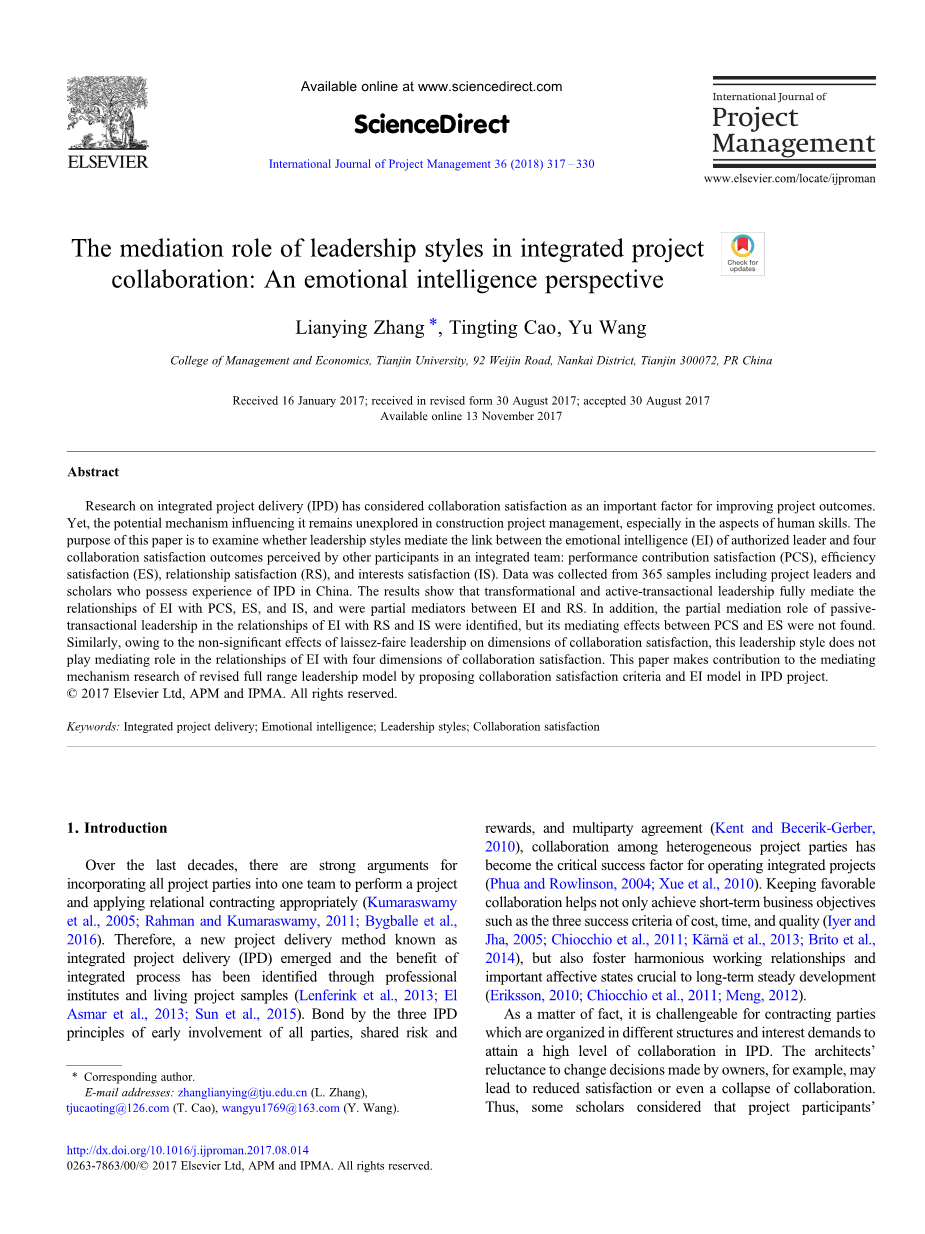 领导风格在整合项目合作中的中介作用:情商视角外文翻译资料