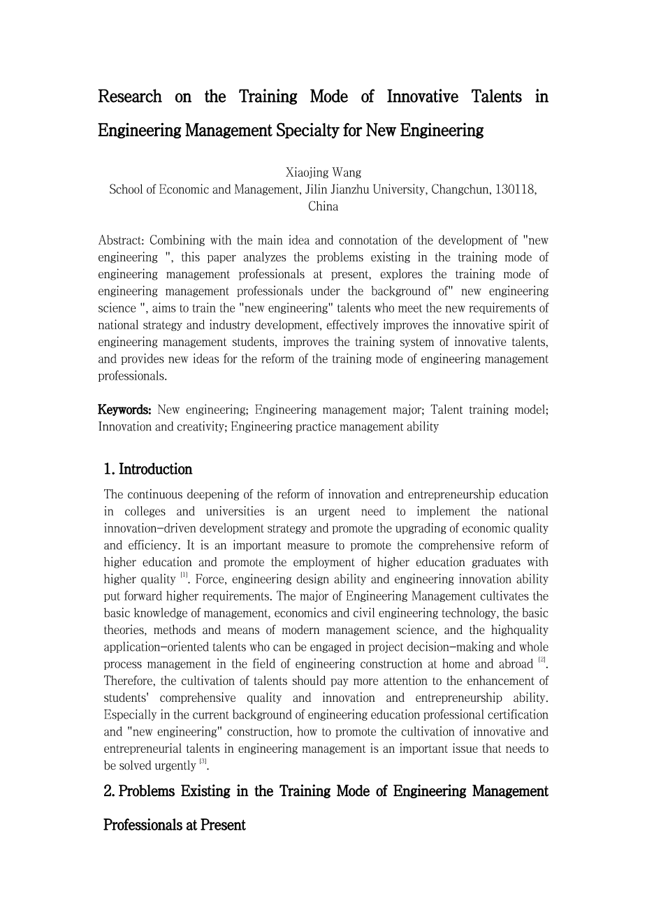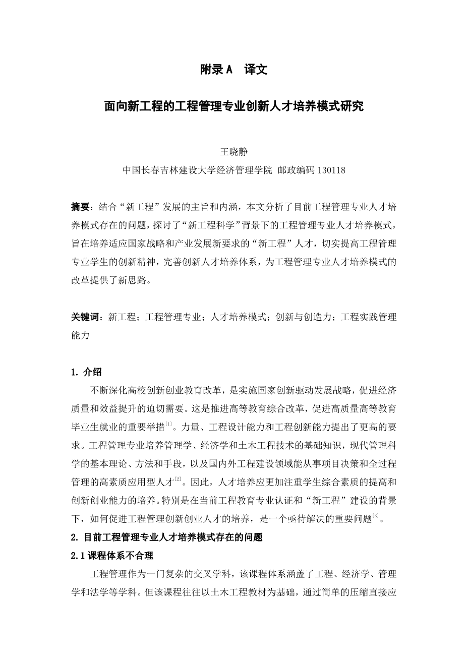 面向新工程的工程管理专业创新人才培养模式研究外文翻译资料 2023-09-01 09:58:53 英语原文共 5 页,剩余内容已隐藏,支付完成后下载完整资料 英语译文共 4 页,剩余内容已隐藏,支付完成后下载完整资料 资料编号:[607189],资料为PDF文档或Word文档,PDF文档可免费转换为Word 您需要先支付 30元 才能查看全部内容!立即支付 发小红书推广免费获取该资料资格。点击链接进入获取推广文案即可: Ai一键组稿 | 降AI率 | 降重复率 | 论文一键排版 PREVIOUS NEXT 您可能感兴趣的文章 大流动性混凝土的工作性能研究开题报告 城市基本生态控制线中城中村生态改造模式研究文献综述 紫玉明珠20号楼土建工程招标文件编制文献综述 PPP项目绩效考核体系研究开题报告 滨河新区景城23#楼土建工程招标文件编制开题报告 城市道路工程投资控制研究开题报告 武汉联投梧桐郡悦园房地产项目可行性研究文献综述 武汉诺亚方舟项目招标文件的编制开题报告 BIM5D在房地产开发项目成本管理中的应用研究文献综述 禾丰智能制造基地2号生产厂房土建工程投标文件编制文献综述