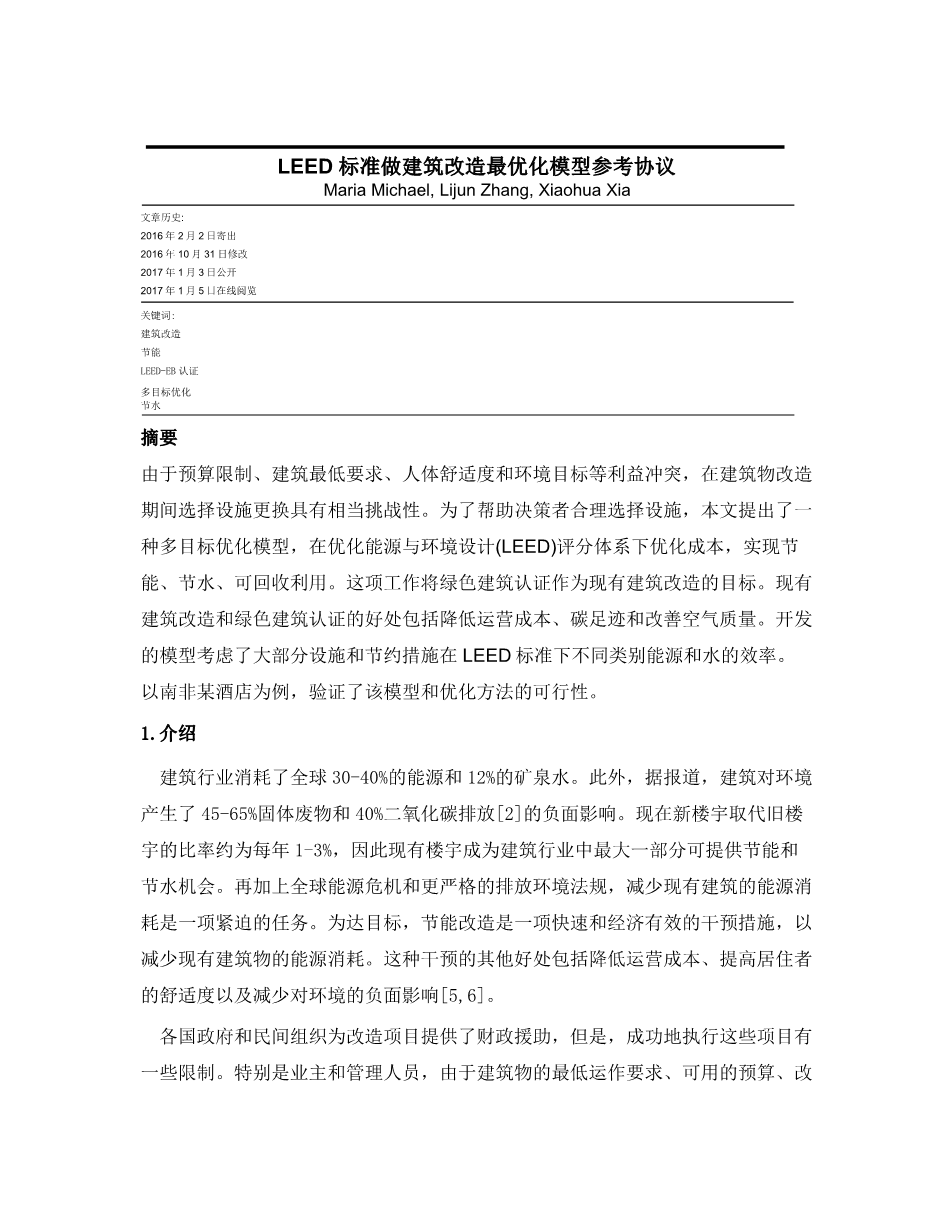 LEED标准做建筑改造最优化模型参考协议外文翻译资料