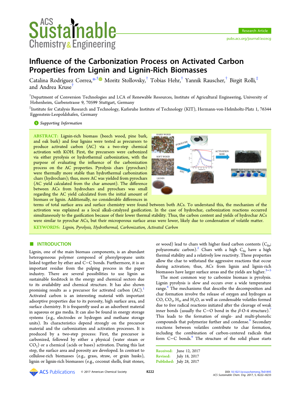 关键词:Lignin木质素,Pyrolysis热解,Hydrothermal水热碳化,Activated Carbon活性炭。