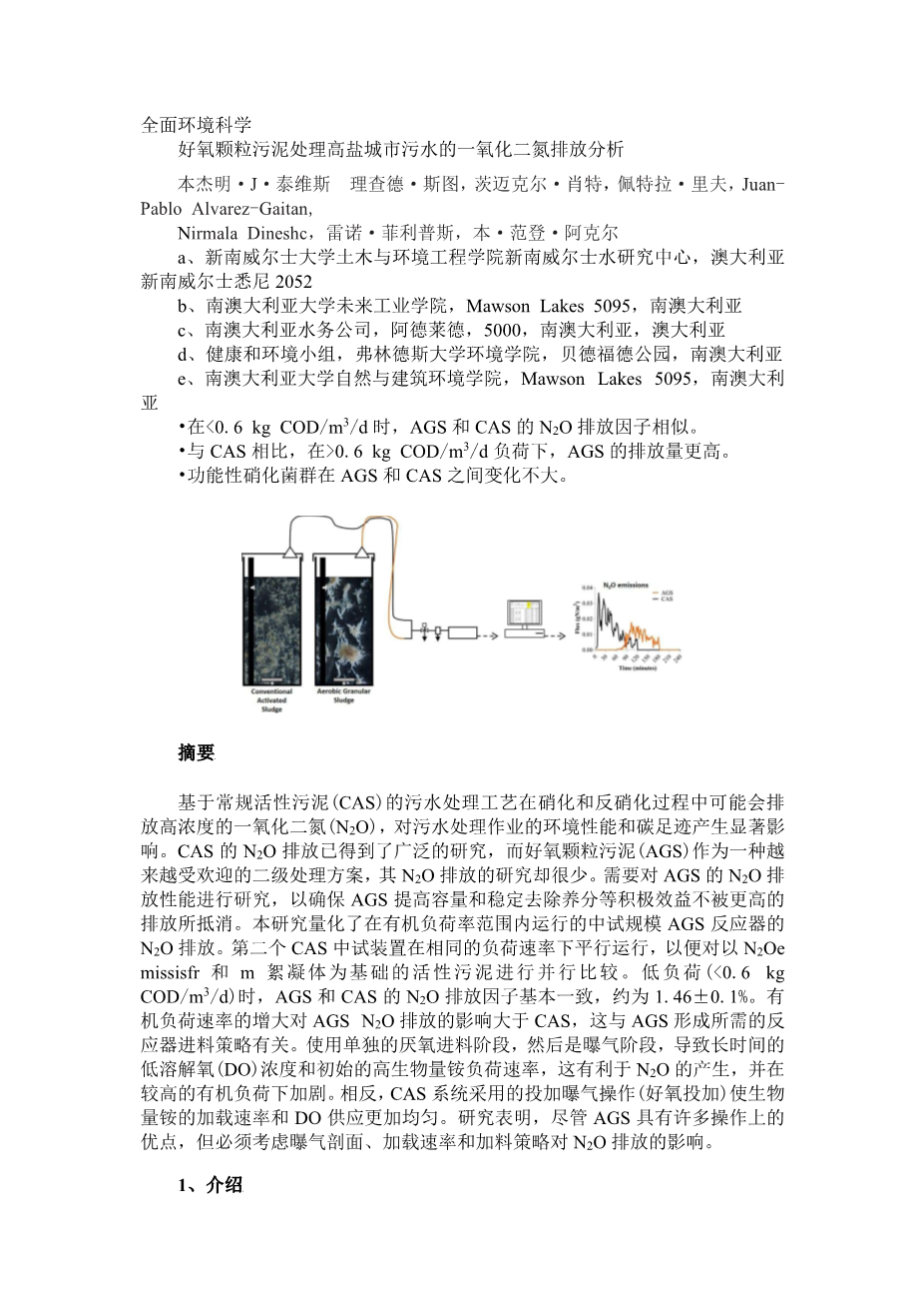 好氧颗粒污泥处理高盐城市污水的-氧化二氮排放分析外文翻译资料 2023-02-15 10:37:09 英语原文共 11 页,剩余内容已隐藏,支付完成后下载完整资料 英语译文共 12 页,剩余内容已隐藏,支付完成后下载完整资料 资料编号:[258237],资料为PDF文档或Word文档,PDF文档可免费转换为Word 您需要先支付 30元 才能查看全部内容!立即支付 发小红书推广免费获取该资料资格。点击链接进入获取推广文案即可: Ai一键组稿 | 降AI率 | 降重复率 | 论文一键排版 PREVIOUS NEXT 您可能感兴趣的文章 印染厂废水处理工艺设计开题报告 改性生物炭对四环素的吸附开题报告 湖北省襄阳市谷城县城关镇南部排水工程设计开题报告 洋坪镇城区给水工程设计开题报告 西宁电力大厦建筑给排水设计开题报告 四川省广安市鼎屏镇排水工程设计文献综述 林州市城区排水管网及污水处理系统设计文献综述 越秀星空大楼给排水工程设计文献综述 湖北省黄石某镇排水工程设计开题报告 德国卢萨蒂亚酸性开采湖泊沉积物中磷的迁移率外文翻译资料