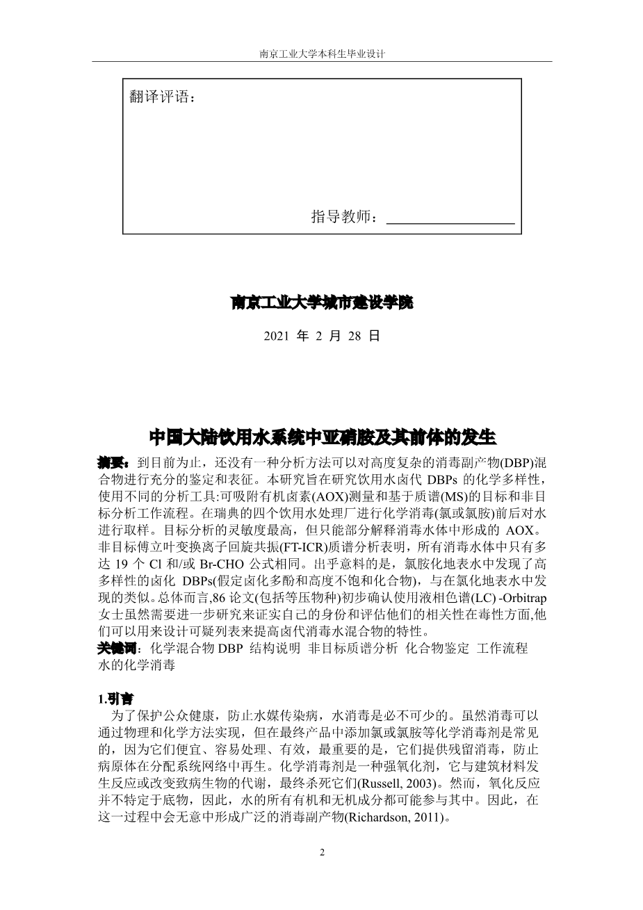 中国大陆饮用水系统中亚绡胺及其前体的发生外文翻译资料