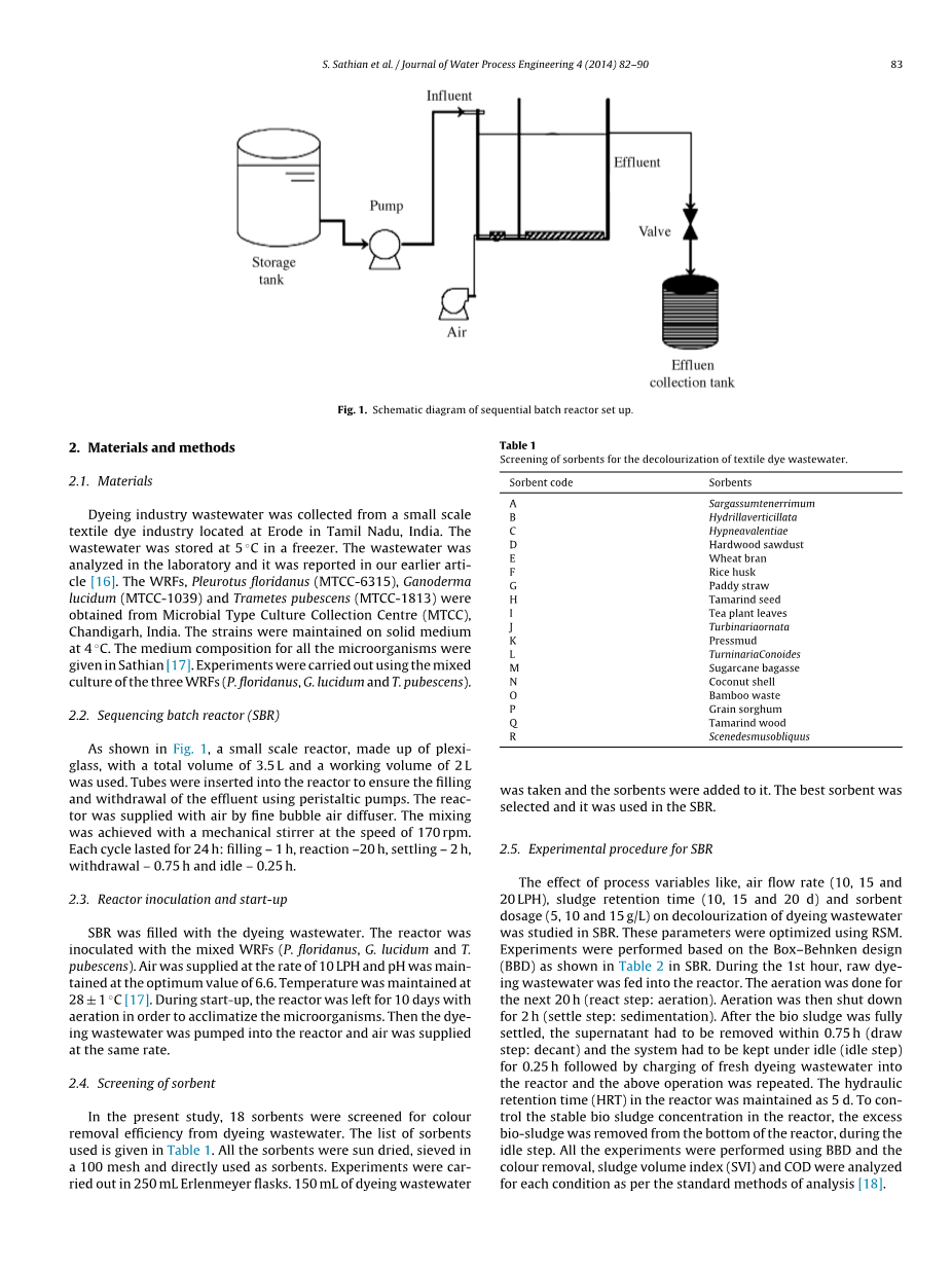 SBR反应器中充满印染废水,将反应器与混合白腐真菌(佛州侧耳,灵芝和毛栓菌)接种,空气以10LPH的速率供给,pH值保持在6.6的最佳值,温度保持在28plusmn;1◦C[17]。在启动过程中,将反应器放置10天,通气以便适应新环境的微生物。然后将印染废水被泵入反应器中,并以同样的速率供给空气。