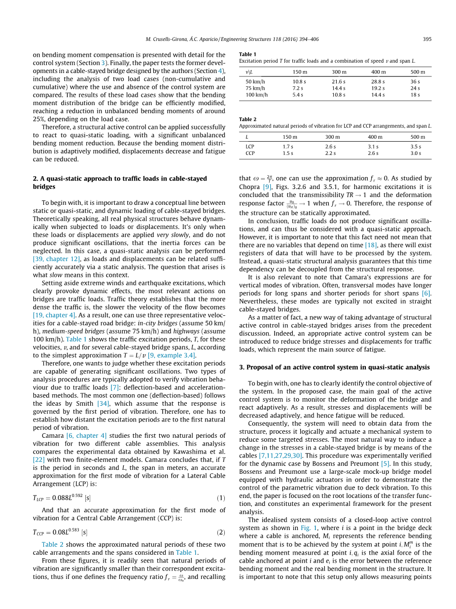 还要注意,卡马拉所表达的是为了垂直振动模式。 通常,横向模式对较大跨度有更长的时间,对较小的跨径有更短的时间[6]。然而,这些模式通常不会在斜拉桥。事实上,在斜拉桥上采用结构主动控制的新方式来自于先例。实际上,可以采用适当的主动控制系统来减少交通负载引起的的桥梁应力和位移。