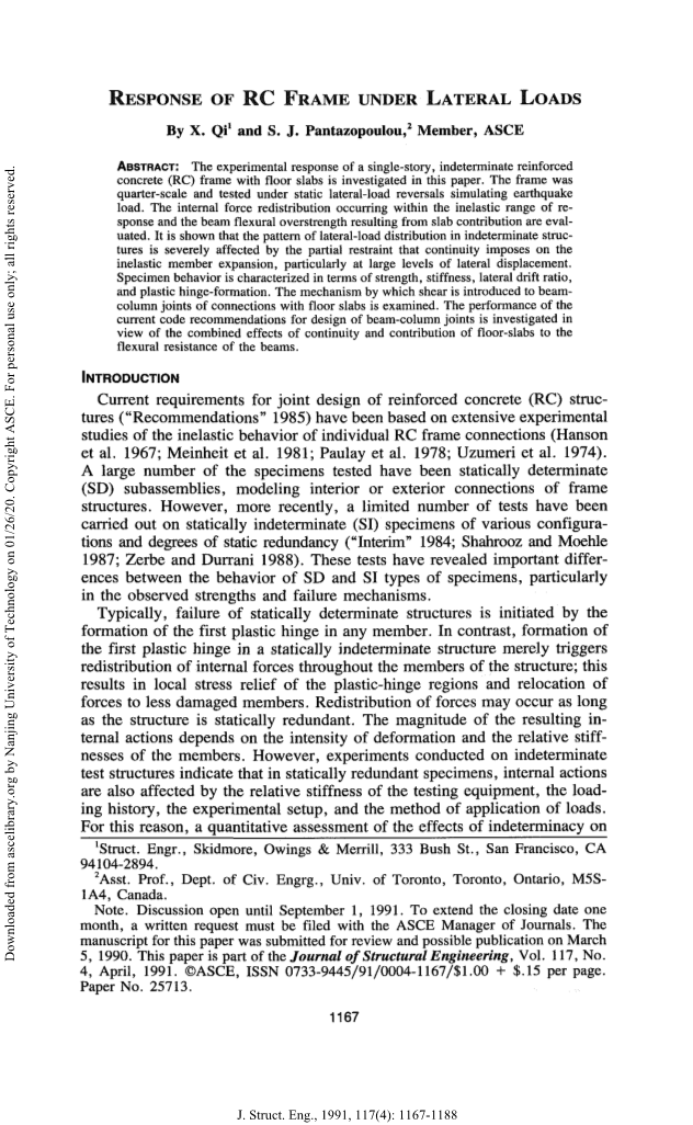 钢筋混凝土框架在侧向荷载下的响应外文翻译资料 2023-01-19 09:15:46 英语原文共 22 页,剩余内容已隐藏,支付完成后下载完整资料 英语译文共 23 页,剩余内容已隐藏,支付完成后下载完整资料 资料编号:[254839],资料为PDF文档或Word文档,PDF文档可免费转换为Word 您需要先支付 30元 才能查看全部内容!立即支付 发小红书推广免费获取该资料资格。点击链接进入获取推广文案即可: Ai一键组稿 | 降AI率 | 降重复率 | 论文一键排版 PREVIOUS NEXT 您可能感兴趣的文章 南昌市湖滨花园宅楼设计文献综述 大跨空间网架结构金属屋面板的风致疲劳损伤研究文献综述 螺栓连接装配式混凝土框架结构承载力研究及应用文献综述 天山区财政局办公综合楼设计文献综述 超高结构风效应的风洞试验研究开题报告 武汉市太子湖中学图书馆设计开题报告 仁新高速(40 43)m钢-混组合连续梁桥力学性能分析文献综述 青岛赫谷农牧公司钢结构办公楼设计开题报告 中望置业有限责任公司综合楼设计开题报告 3×25m预应力混凝土箱梁桥施工图设计开题报告