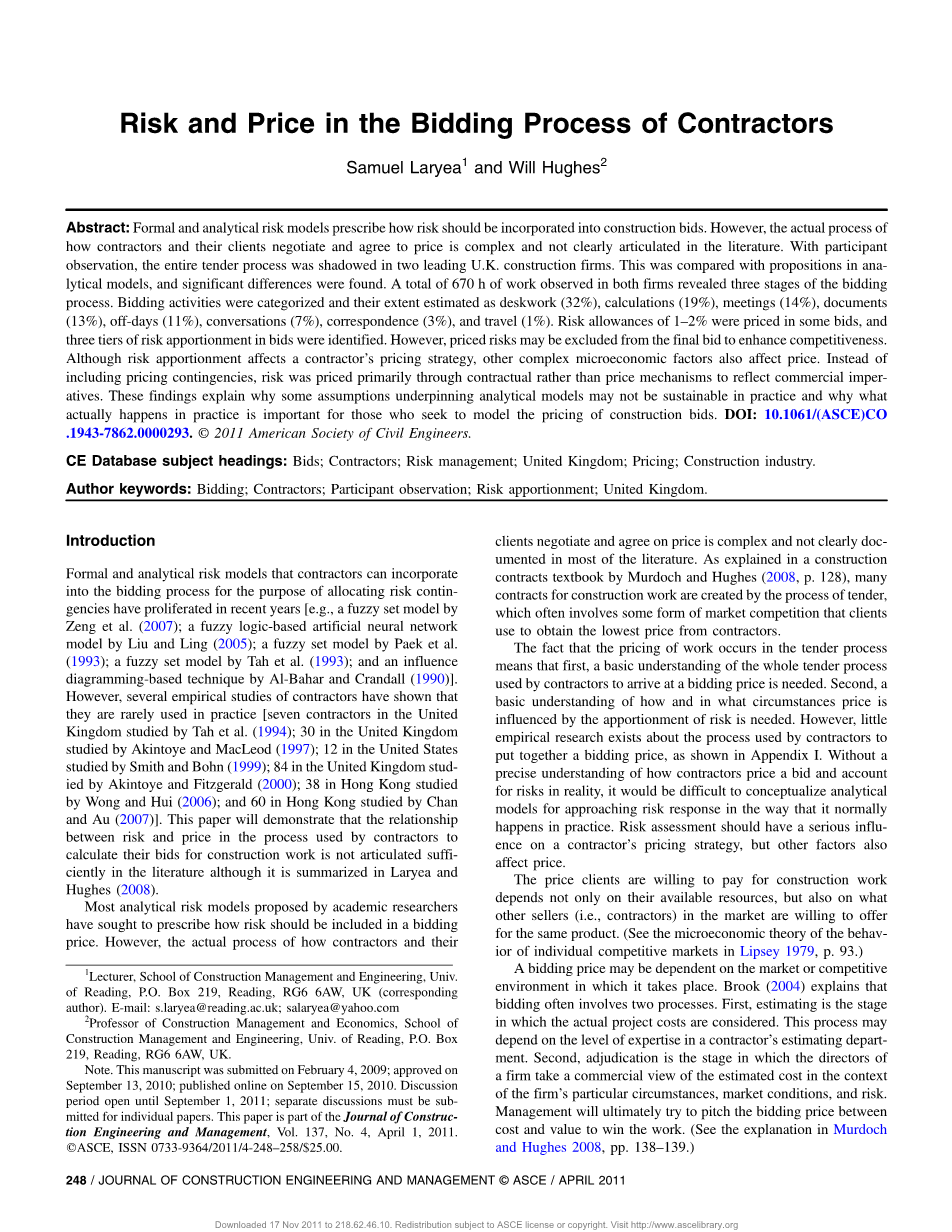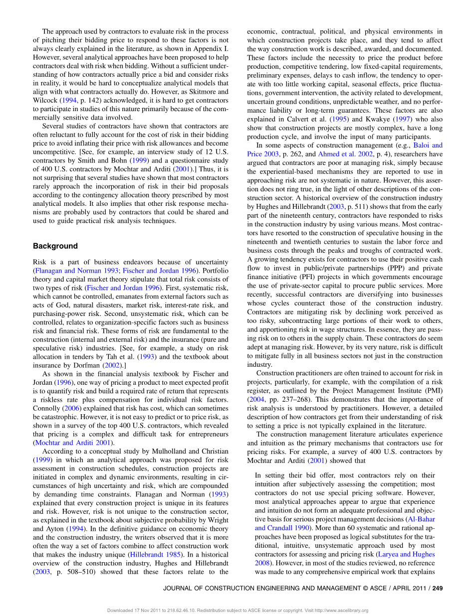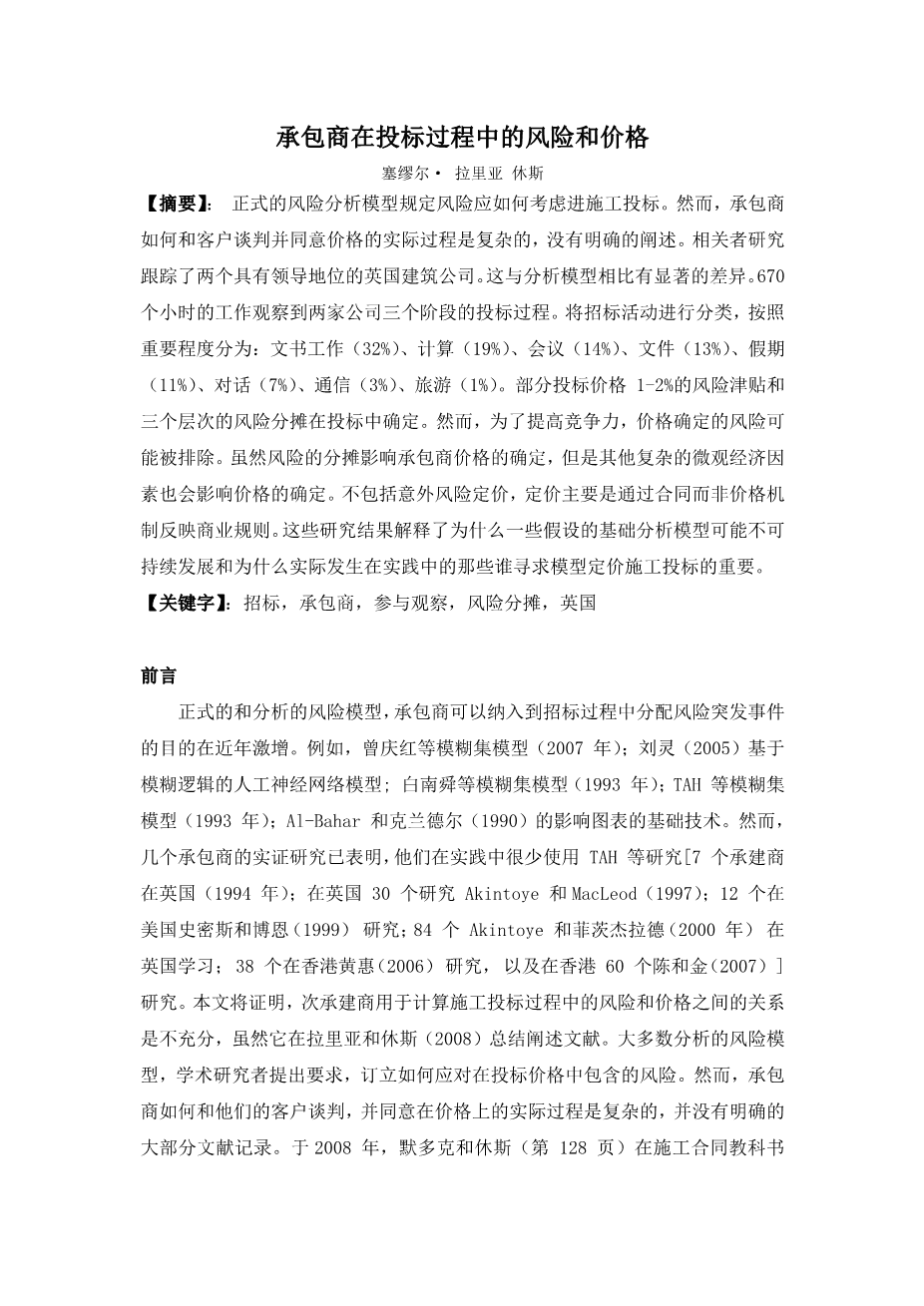 承包商在投标过程中的风险和价格外文翻译资料 2023-01-31 10:23:54 英语原文共 11 页,剩余内容已隐藏,支付完成后下载完整资料 英语译文共 6 页,剩余内容已隐藏,支付完成后下载完整资料 资料编号:[246666],资料为PDF文档或Word文档,PDF文档可免费转换为Word 您需要先支付 30元 才能查看全部内容!立即支付 发小红书推广免费获取该资料资格。点击链接进入获取推广文案即可: Ai一键组稿 | 降AI率 | 降重复率 | 论文一键排版 PREVIOUS NEXT 您可能感兴趣的文章 南昌市湖滨花园宅楼设计文献综述 大跨空间网架结构金属屋面板的风致疲劳损伤研究文献综述 螺栓连接装配式混凝土框架结构承载力研究及应用文献综述 天山区财政局办公综合楼设计文献综述 超高结构风效应的风洞试验研究开题报告 武汉市太子湖中学图书馆设计开题报告 仁新高速(40 43)m钢-混组合连续梁桥力学性能分析文献综述 青岛赫谷农牧公司钢结构办公楼设计开题报告 中望置业有限责任公司综合楼设计开题报告 3×25m预应力混凝土箱梁桥施工图设计开题报告
