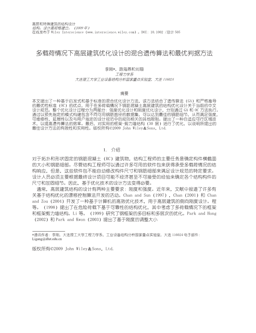 多载荷情况下高层建筑优化设计的混合遗传算法和最优判据方法外文翻译资料 2023-02-01 09:09:03 英语原文共 23 页,剩余内容已隐藏,支付完成后下载完整资料 英语译文共 27 页,剩余内容已隐藏,支付完成后下载完整资料 资料编号:[246468],资料为PDF文档或Word文档,PDF文档可免费转换为Word 您需要先支付 30元 才能查看全部内容!立即支付 发小红书推广免费获取该资料资格。点击链接进入获取推广文案即可: Ai一键组稿 | 降AI率 | 降重复率 | 论文一键排版 PREVIOUS NEXT 您可能感兴趣的文章 南昌市湖滨花园宅楼设计文献综述 大跨空间网架结构金属屋面板的风致疲劳损伤研究文献综述 螺栓连接装配式混凝土框架结构承载力研究及应用文献综述 天山区财政局办公综合楼设计文献综述 超高结构风效应的风洞试验研究开题报告 武汉市太子湖中学图书馆设计开题报告 仁新高速(40 43)m钢-混组合连续梁桥力学性能分析文献综述 青岛赫谷农牧公司钢结构办公楼设计开题报告 中望置业有限责任公司综合楼设计开题报告 3×25m预应力混凝土箱梁桥施工图设计开题报告