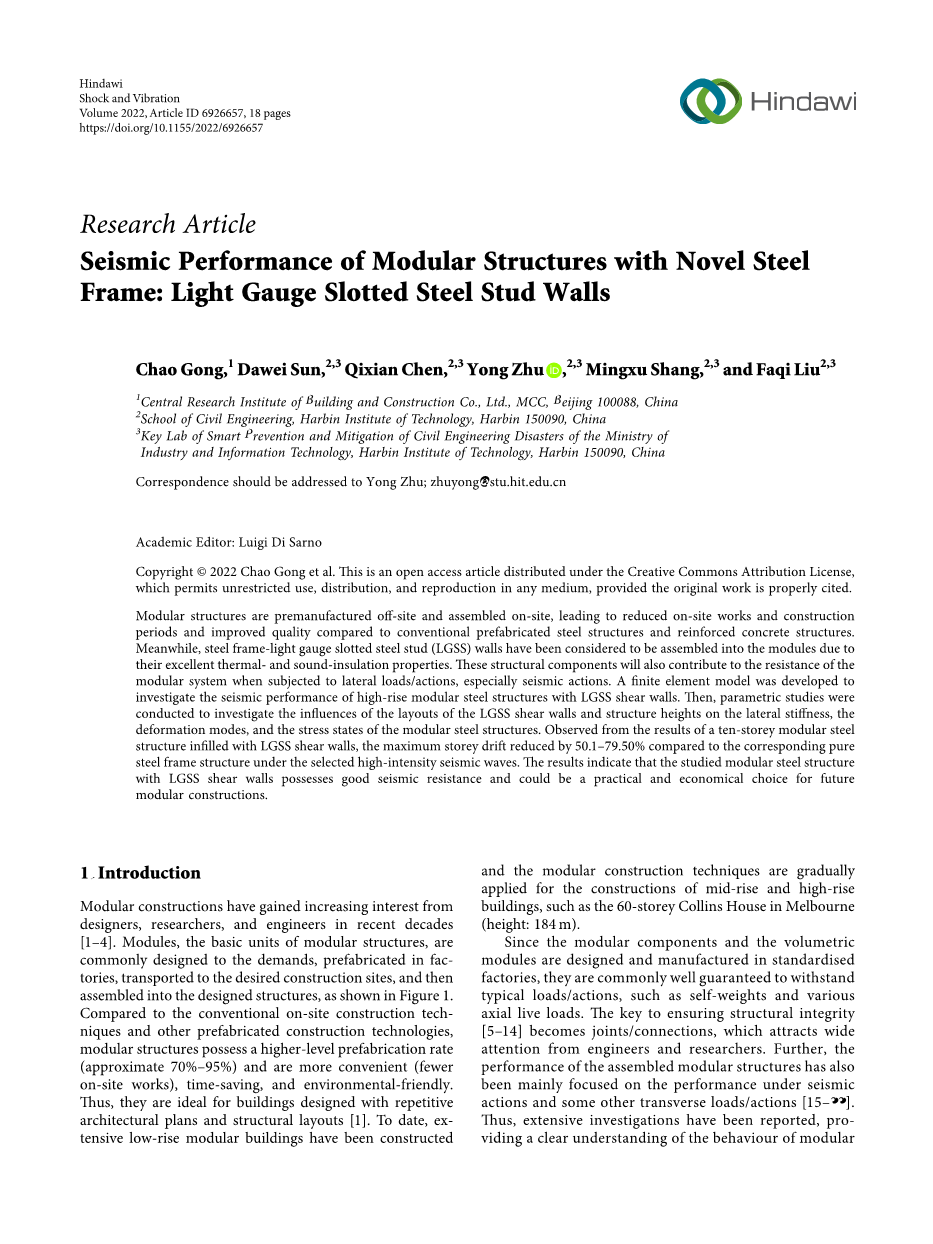 新型钢框架模块化结构的抗震性能:轻型开槽钢螺柱墙外文翻译资料