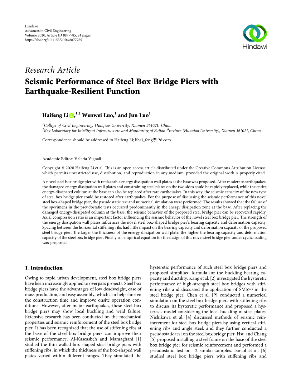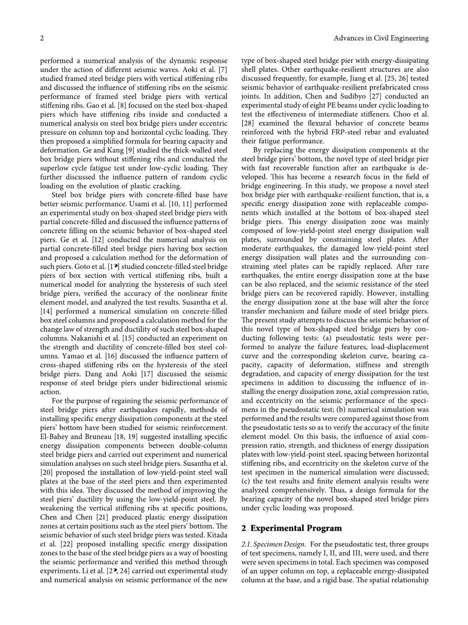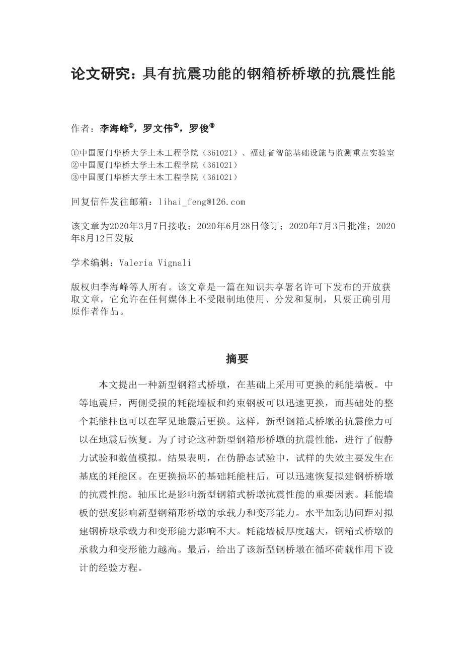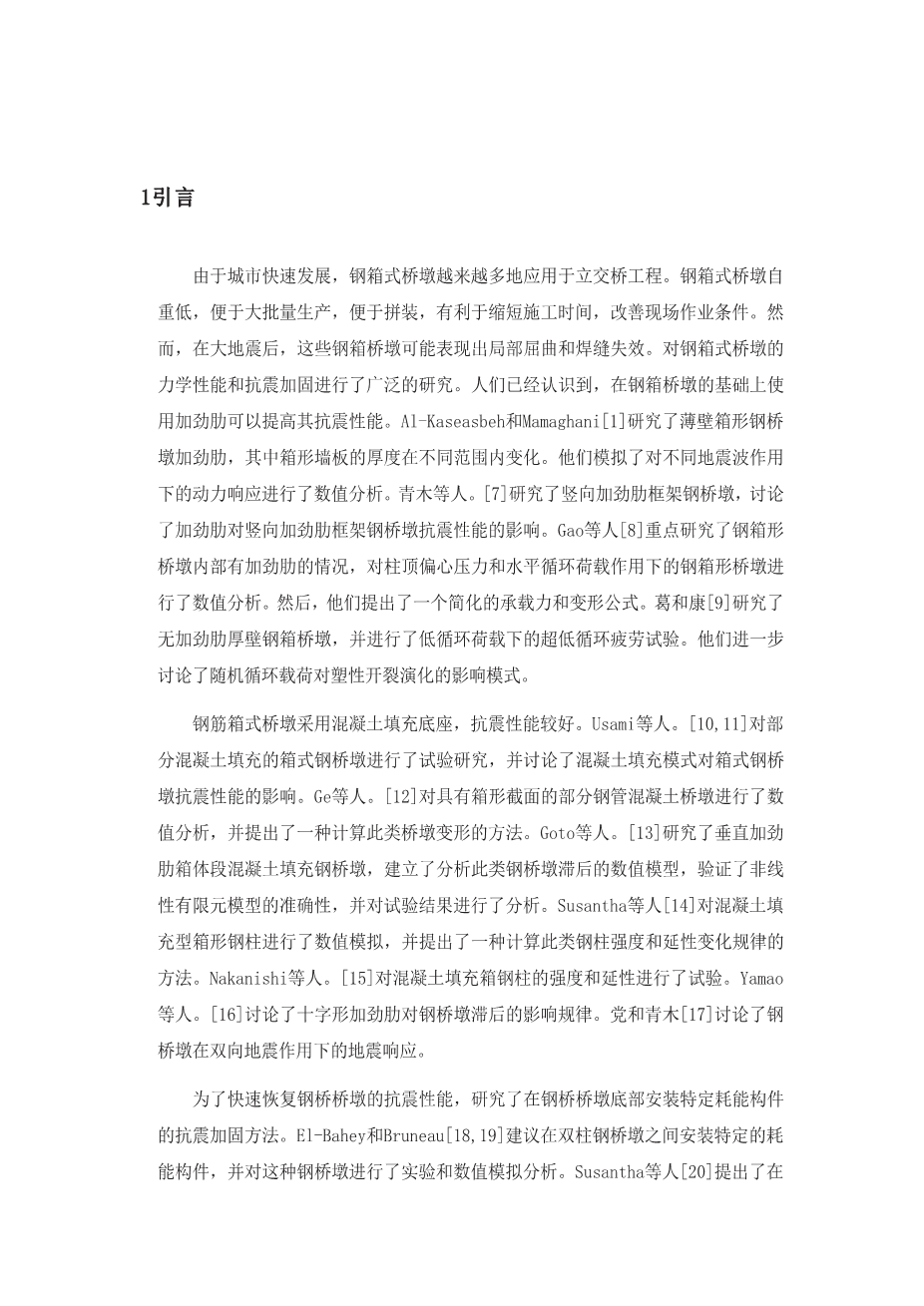 论文研究:具有抗震功能的钢箱桥桥墩的抗震性能外文翻译资料 2023-08-18 18:36:46 英语原文共 24 页,剩余内容已隐藏,支付完成后下载完整资料 英语译文共 30 页,剩余内容已隐藏,支付完成后下载完整资料 资料编号:[605844],资料为PDF文档或Word文档,PDF文档可免费转换为Word 您需要先支付 30元 才能查看全部内容!立即支付 发小红书推广免费获取该资料资格。点击链接进入获取推广文案即可: Ai一键组稿 | 降AI率 | 降重复率 | 论文一键排版 PREVIOUS NEXT 您可能感兴趣的文章 南昌市湖滨花园宅楼设计文献综述 大跨空间网架结构金属屋面板的风致疲劳损伤研究文献综述 螺栓连接装配式混凝土框架结构承载力研究及应用文献综述 天山区财政局办公综合楼设计文献综述 超高结构风效应的风洞试验研究开题报告 武汉市太子湖中学图书馆设计开题报告 仁新高速(40 43)m钢-混组合连续梁桥力学性能分析文献综述 青岛赫谷农牧公司钢结构办公楼设计开题报告 中望置业有限责任公司综合楼设计开题报告 3×25m预应力混凝土箱梁桥施工图设计开题报告