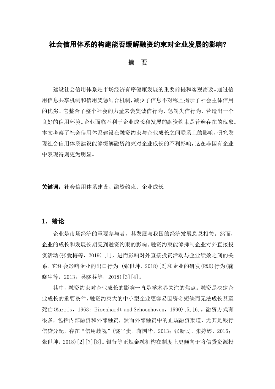 社会信用体系的构建能否缓解融资约束对企业发展的影响?外文翻译资料 2023-08-18 18:36:56 英语原文共 18 页,剩余内容已隐藏,支付完成后下载完整资料 英语译文共 10 页,剩余内容已隐藏,支付完成后下载完整资料 资料编号:[605818],资料为PDF文档或Word文档,PDF文档可免费转换为Word 您需要先支付 30元 才能查看全部内容!立即支付 发小红书推广免费获取该资料资格。点击链接进入获取推广文案即可: Ai一键组稿 | 降AI率 | 降重复率 | 论文一键排版 PREVIOUS NEXT 您可能感兴趣的文章 南昌市湖滨花园宅楼设计文献综述 大跨空间网架结构金属屋面板的风致疲劳损伤研究文献综述 螺栓连接装配式混凝土框架结构承载力研究及应用文献综述 天山区财政局办公综合楼设计文献综述 超高结构风效应的风洞试验研究开题报告 武汉市太子湖中学图书馆设计开题报告 仁新高速(40 43)m钢-混组合连续梁桥力学性能分析文献综述 青岛赫谷农牧公司钢结构办公楼设计开题报告 中望置业有限责任公司综合楼设计开题报告 3×25m预应力混凝土箱梁桥施工图设计开题报告
