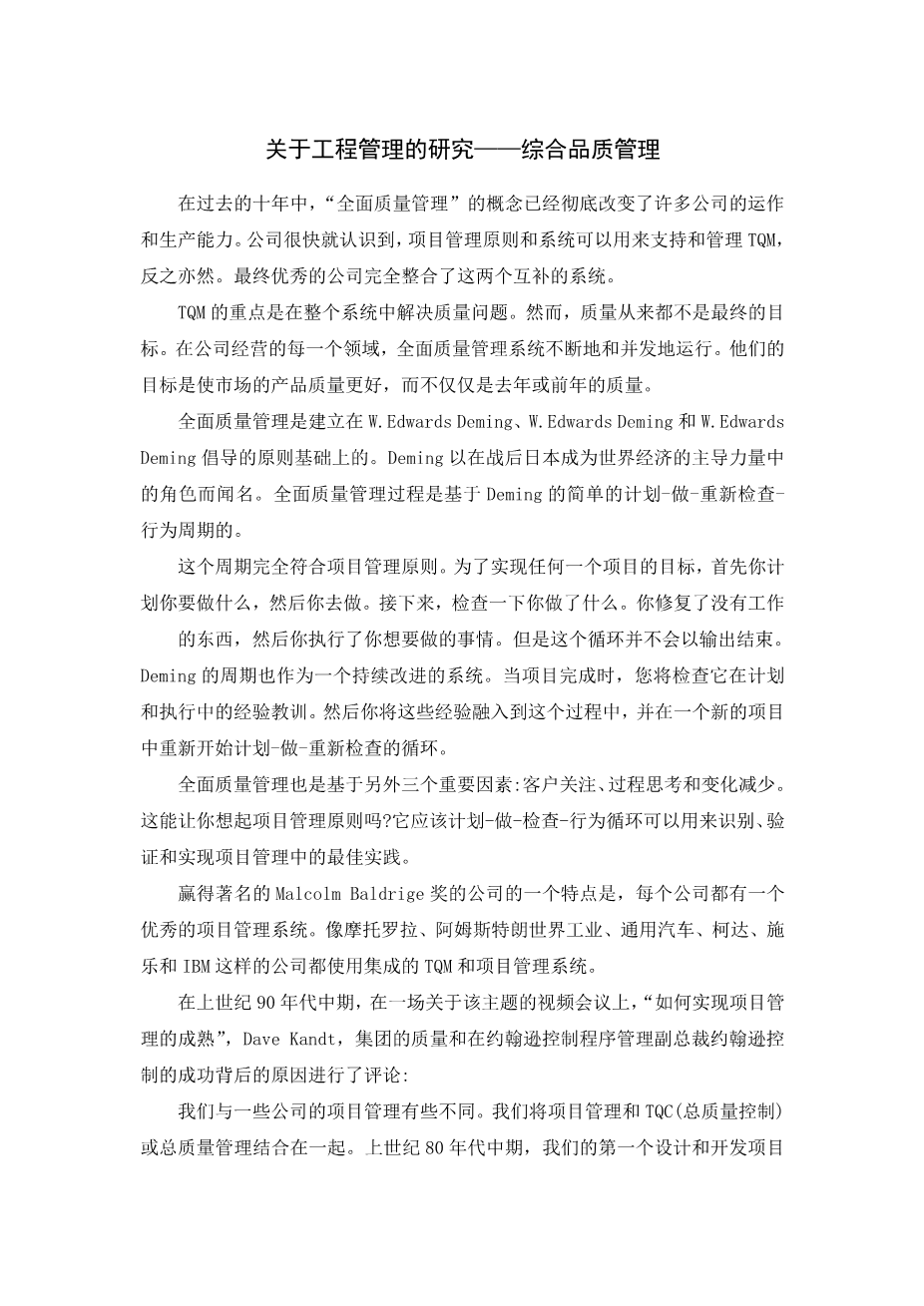关于工程管理的研究——综合品质管理外文翻译资料 2023-08-23 14:52:44 英语原文共 8 页,剩余内容已隐藏,支付完成后下载完整资料 英语译文共 6 页,剩余内容已隐藏,支付完成后下载完整资料 资料编号:[608464],资料为PDF文档或Word文档,PDF文档可免费转换为Word 您需要先支付 30元 才能查看全部内容!立即支付 发小红书推广免费获取该资料资格。点击链接进入获取推广文案即可: Ai一键组稿 | 降AI率 | 降重复率 | 论文一键排版 PREVIOUS NEXT 您可能感兴趣的文章 南昌市湖滨花园宅楼设计文献综述 大跨空间网架结构金属屋面板的风致疲劳损伤研究文献综述 螺栓连接装配式混凝土框架结构承载力研究及应用文献综述 天山区财政局办公综合楼设计文献综述 超高结构风效应的风洞试验研究开题报告 武汉市太子湖中学图书馆设计开题报告 仁新高速(40 43)m钢-混组合连续梁桥力学性能分析文献综述 青岛赫谷农牧公司钢结构办公楼设计开题报告 中望置业有限责任公司综合楼设计开题报告 3×25m预应力混凝土箱梁桥施工图设计开题报告