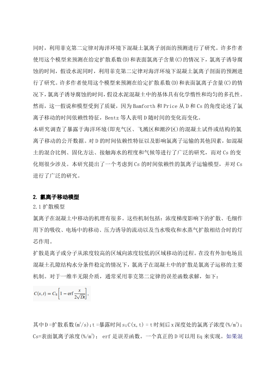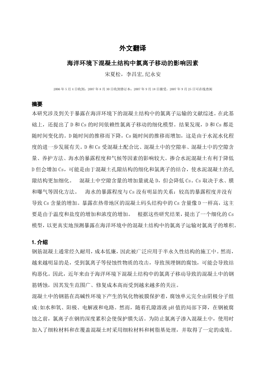 海洋环境下混凝土结构中氯离子移动的影响因素外文翻译资料