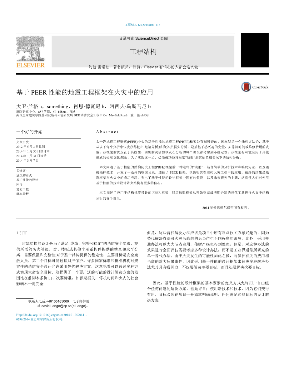 基于PEER性能的地震工程框架在火灾中的应用外文翻译资料