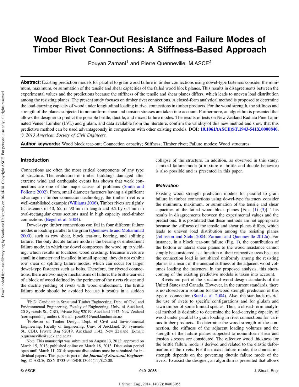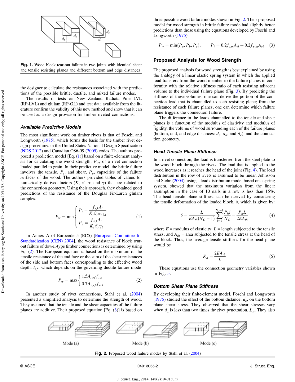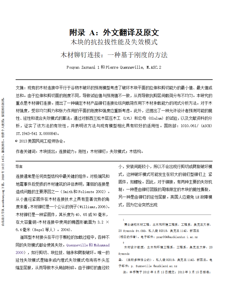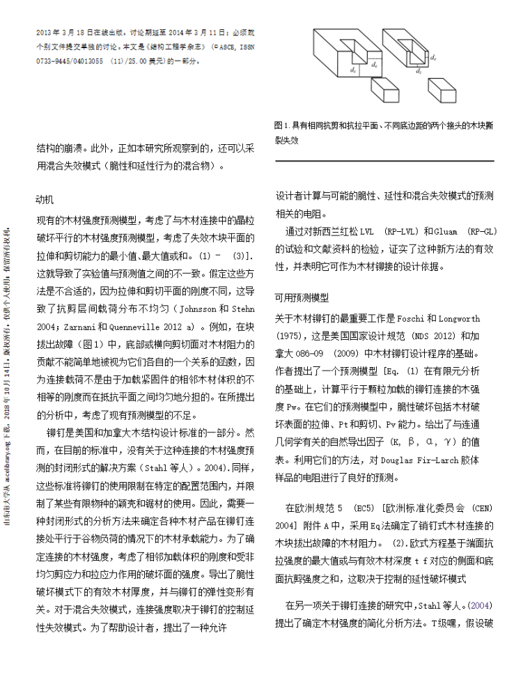 木材铆钉连接的木块撕裂阻力和破坏模式:基于刚度的方法外文翻译资料