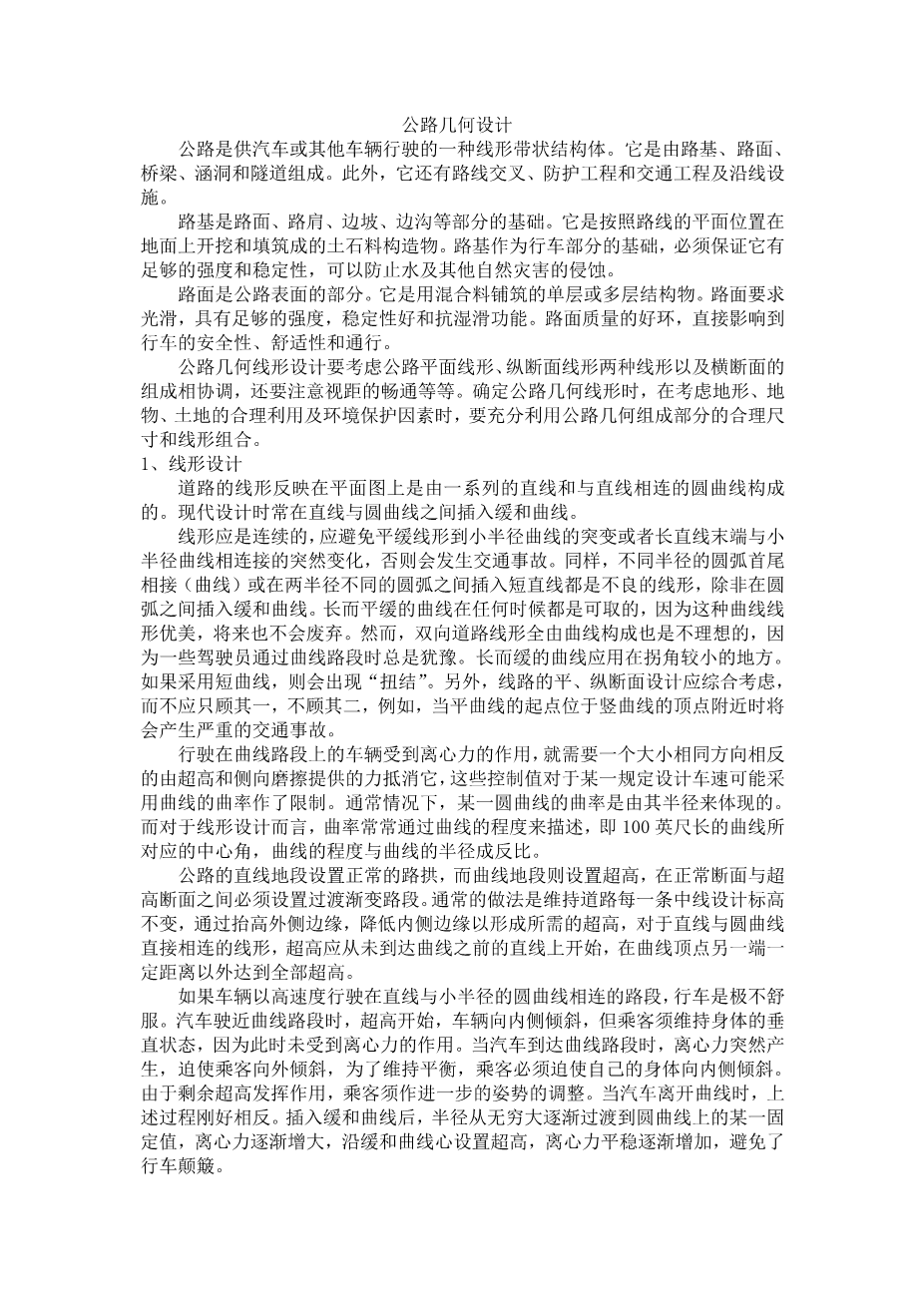 Geometric Design of Highways
