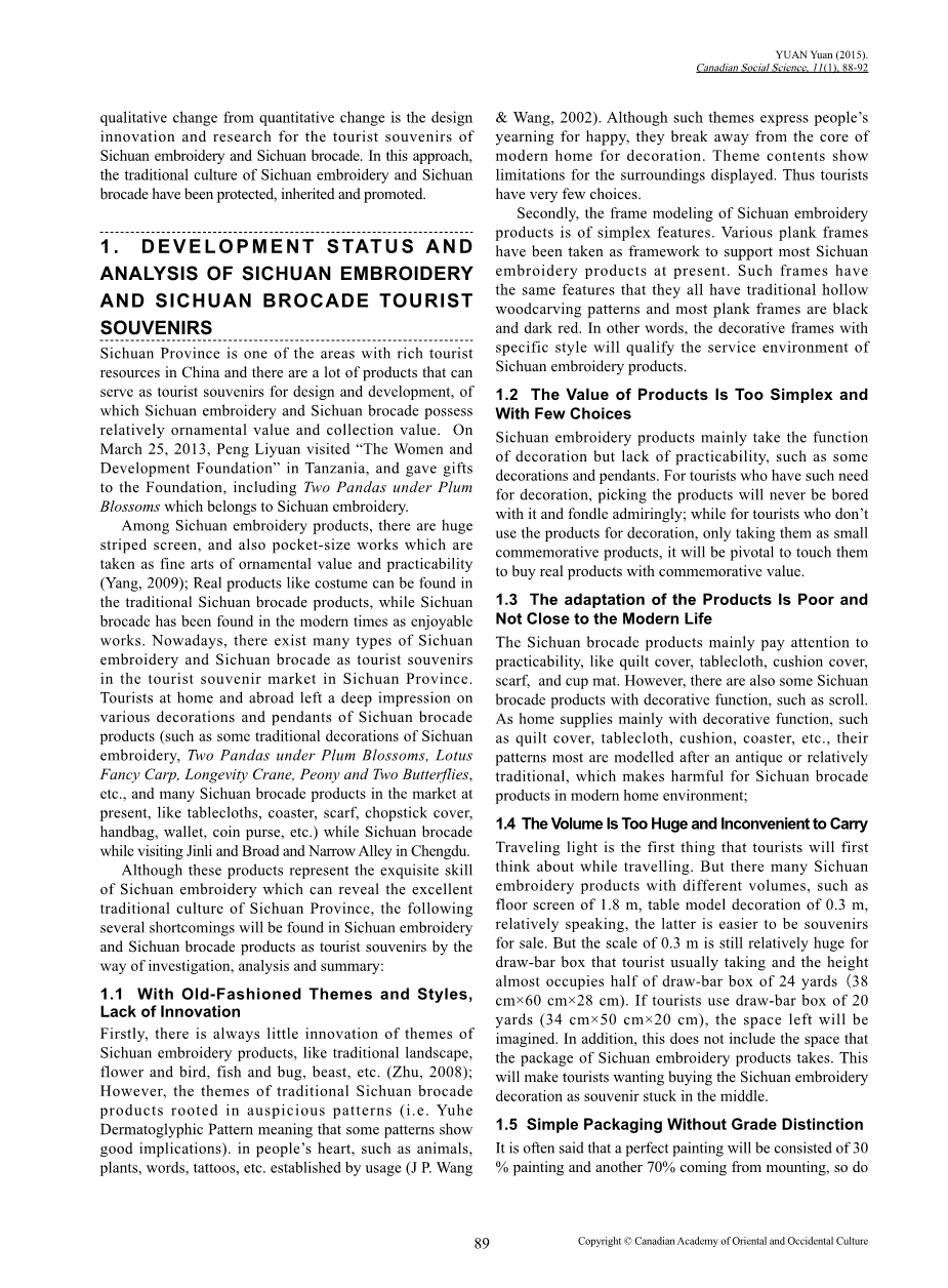 1.蜀绣蜀锦旅游纪念品开发研究现状