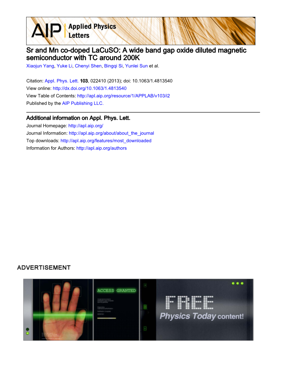 Sr和Mn同时掺杂LaOCuS:一个Tc在200K的宽带隙氧化物稀磁半导体外文翻译资料