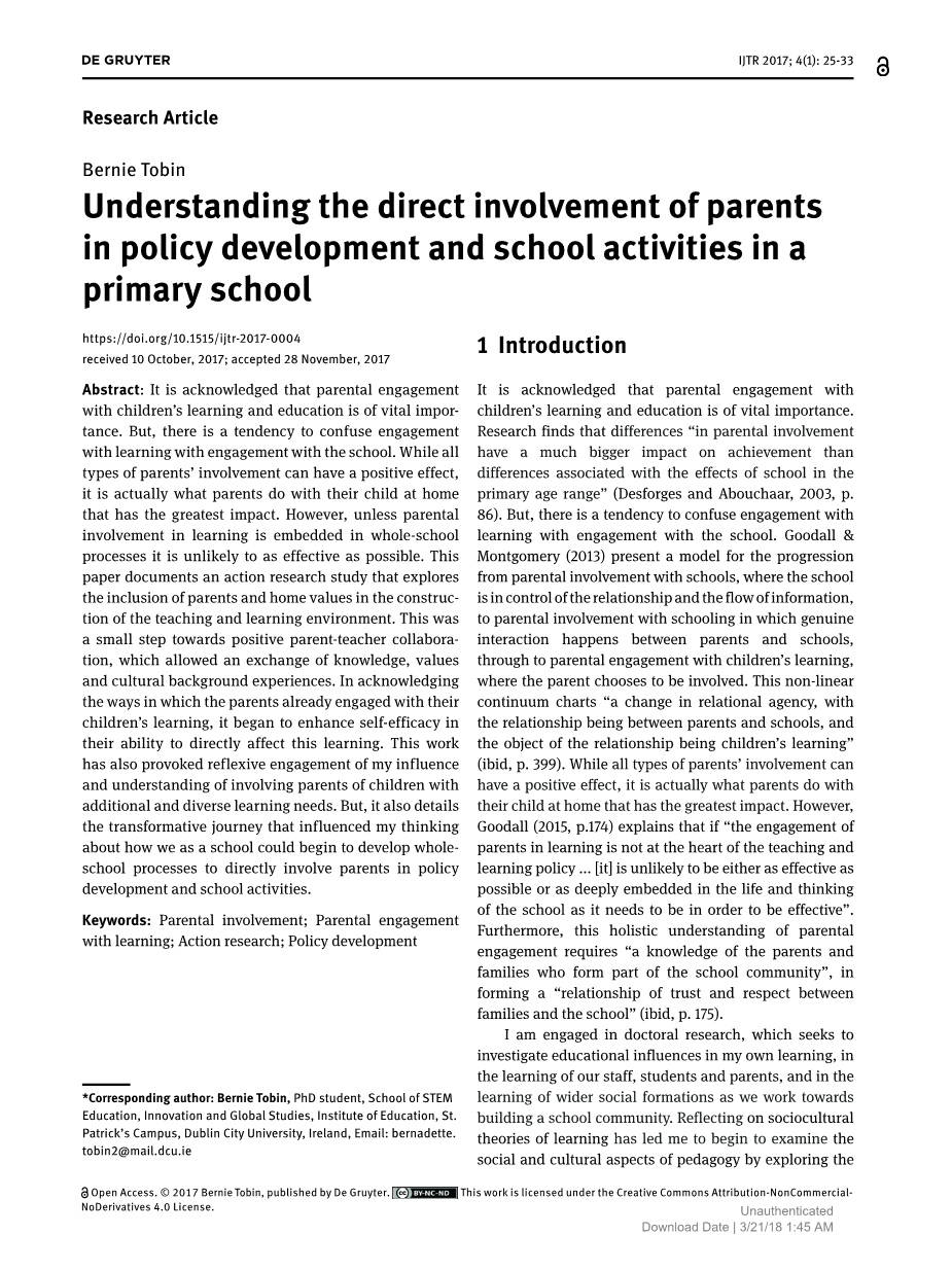 关键词:父母参与; 家长参与学习; 行为研究; 政策制定