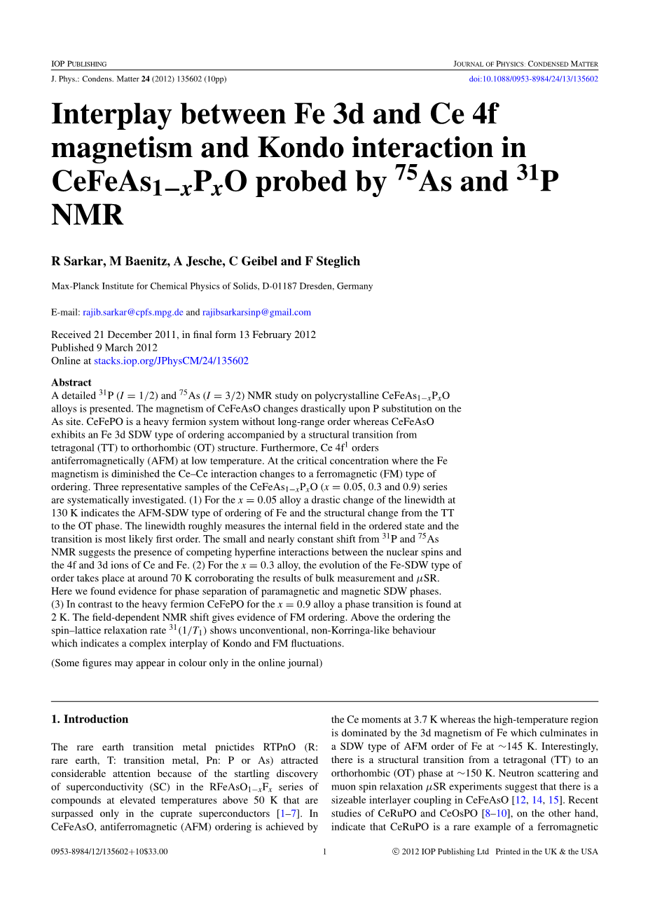 原文作者 R Sarkar,M Baenitz,A Jesche,C Geibel和F Steglich
