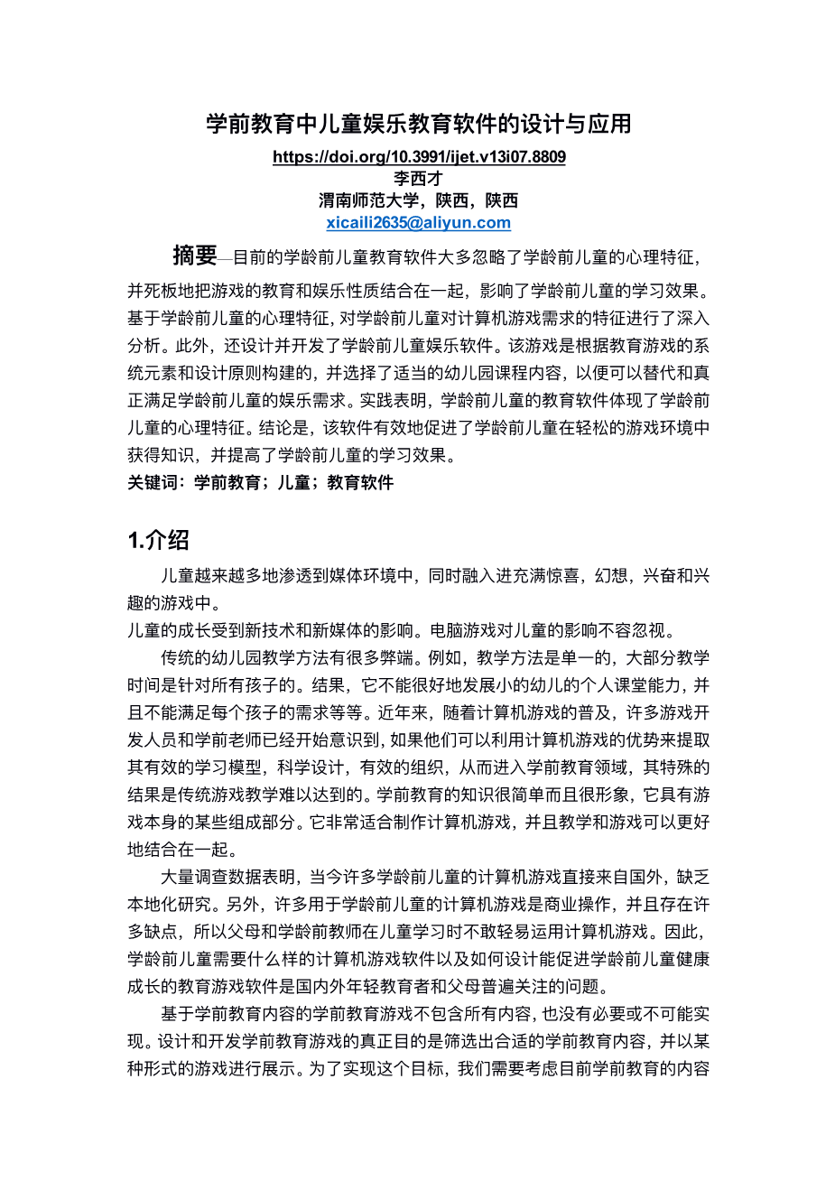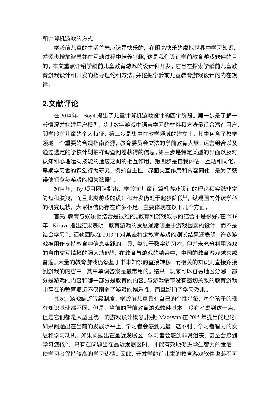 学前教育中儿童娱乐教育软件的设计与应用外文翻译资料 2023-02-27 09:37:45 英语原文共 13 页,剩余内容已隐藏,支付完成后下载完整资料 英语译文共 11 页,剩余内容已隐藏,支付完成后下载完整资料 资料编号:[410356],资料为PDF文档或Word文档,PDF文档可免费转换为Word 您需要先支付 30元 才能查看全部内容!立即支付 免费ai写开题、写任务书: 免费Ai开题 | 免费Ai任务书 | 免费降AI率 | 免费降重复率 | 论文免费排版 PREVIOUS NEXT 您可能感兴趣的文章 浅析“ばかりか”和“どころか”的异同开题报告 日本刀の模様开题报告 日本の化粧史について文献综述 颜色词“紫”的语义考察及文化内涵分析文献综述 中日独身問題の分析と考察开题报告 日本の文学作品から見る日本の癒やし系文化开题报告 関ヶ原の戦いに関する再考察ー正当性を中心に文献综述 中国古诗词的意象表达与翻译——以许渊冲先生的古诗词译著为例开题报告 论林纾小说翻译中的豪杰译现象——以《黑奴吁天录》及《巴黎茶花女遗事》为例文献综述 “一带一路”国家来华留学生择校影响因素研究—以江苏省为例开题报告