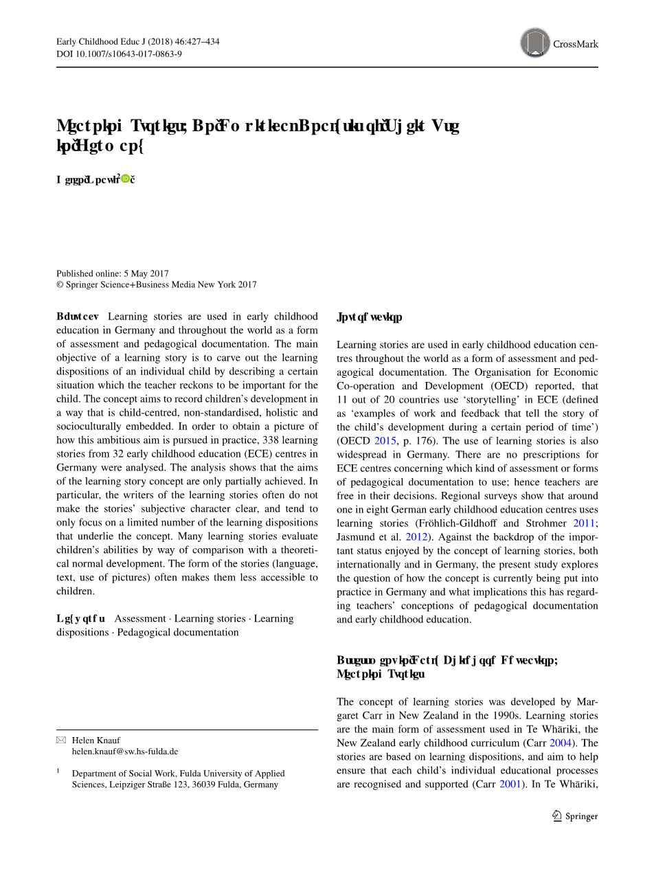 本文探讨了“学习故事”的概念目前如何在德国的幼儿教育中付诸实践的问题。它通过分析基于“学习故事”概念的运用产生的记录来做到这一点。本文的研究基于书面记录具有相当大的力量这一观点。记录一个特别的观察结果和对它的书面解释使观察结果和解释具有事实性。以书面形式记录特定的观察行为和对它的解释使观察和解释具有事实特征。根据这一观点,这些文件不应仅仅被视为关于所发生事件的事实的储存或档案,而应视其本身为构成事实的行动者。这种方法基于社会学(如Latour 1996)和哲学(如Ferraris 2012)的论述,这些论述阐述了记录在构成社会过程和制度中的功能。这一观点在最近关于儿童和儿童时期相关文献的教学处理中尤为突出,例如,Bollig(2008)、Koch和Nebe(2013)以及Schulz(2013)基于Latour的行为者网络理论的研究。Alasuutari等人(2014)和Alasuutari和Kelle(2015)也采用了类似的方法,他们追随Ferraris(2012),将“铭写”视为建构的组成部分。这些研究侧重于通过写作来进行事实的产生和呈现。