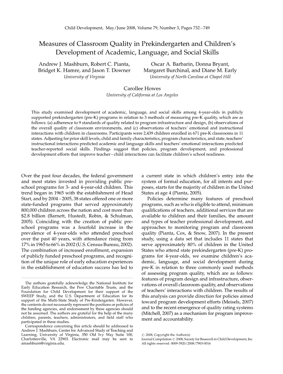 原文作者:Andrew J.Mashburn, Robert C.Pianta, Bridget K.Hamre, Jason T.Downer