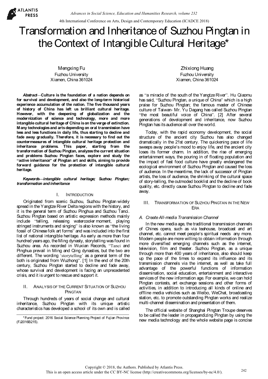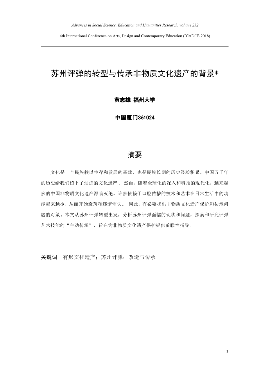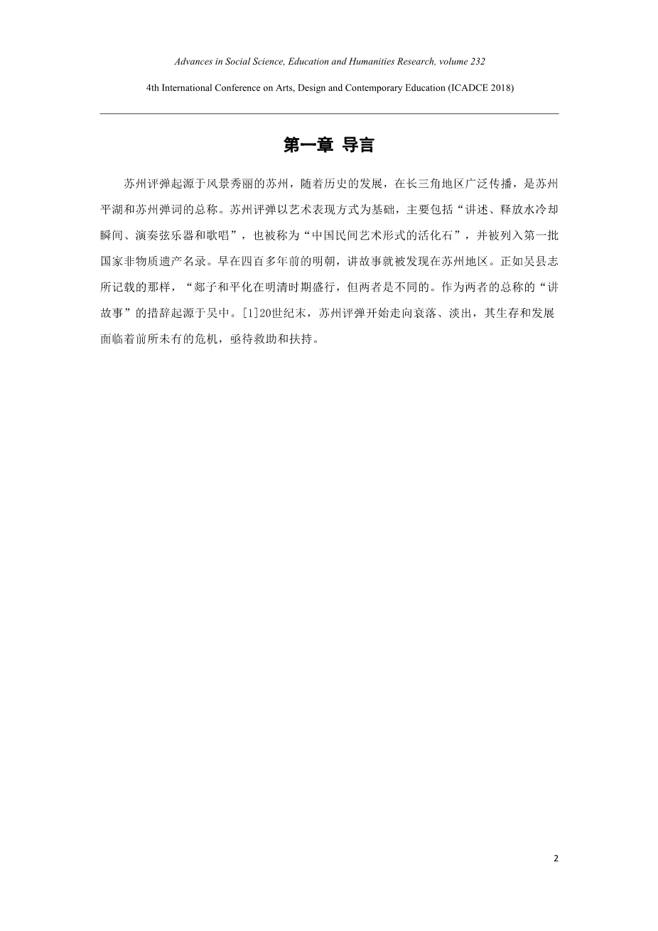 苏州评弹的转型与传承非物质文化遗产的背景外文翻译资料 2023-04-05 20:29:25 英语原文共 4 页,剩余内容已隐藏,支付完成后下载完整资料 英语译文共 10 页,剩余内容已隐藏,支付完成后下载完整资料 资料编号:[590591],资料为PDF文档或Word文档,PDF文档可免费转换为Word 您需要先支付 30元 才能查看全部内容!立即支付 发小红书推广免费获取该资料资格。点击链接进入获取推广文案即可: Ai一键组稿 | 降AI率 | 降重复率 | 论文一键排版 PREVIOUS NEXT 您可能感兴趣的文章 浅析“ばかりか”和“どころか”的异同开题报告 日本刀の模様开题报告 日本の化粧史について文献综述 颜色词“紫”的语义考察及文化内涵分析文献综述 中日独身問題の分析と考察开题报告 日本の文学作品から見る日本の癒やし系文化开题报告 関ヶ原の戦いに関する再考察ー正当性を中心に文献综述 中国古诗词的意象表达与翻译——以许渊冲先生的古诗词译著为例开题报告 论林纾小说翻译中的豪杰译现象——以《黑奴吁天录》及《巴黎茶花女遗事》为例文献综述 “一带一路”国家来华留学生择校影响因素研究—以江苏省为例开题报告