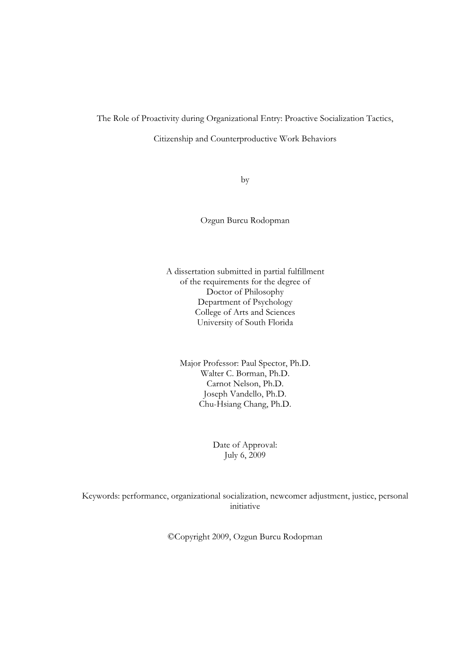 我将首先回顾关于适得其反和组织公民行为的文献。然后,我将介绍同时研究 OCB 和 CWB 的额外任务表现行为的理论和实证工作,包括个人控制。接下来,我将重点关注特定的主动社交行为,作为在工作环境中获得控制权的一种手段。最后,我将提出中介变量(即新人调整),它表明具有一定程度的控制,以及调节变量(例如,正义),将积极的社会化行为与结果联系起来。