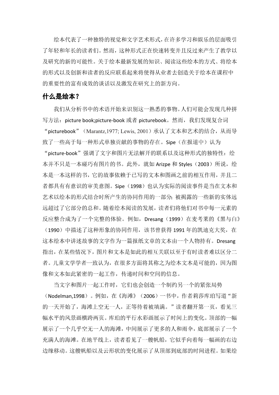 一种独特的视觉和文字艺术形式:关于绘本的最近的研究外文翻译资料 2023-04-06 09:32:17 英语原文共 10 页,剩余内容已隐藏,支付完成后下载完整资料 英语译文共 2 页,剩余内容已隐藏,支付完成后下载完整资料 资料编号:[590383],资料为PDF文档或Word文档,PDF文档可免费转换为Word 您需要先支付 30元 才能查看全部内容!立即支付 发小红书推广免费获取该资料资格。点击链接进入获取推广文案即可: Ai一键组稿 | 降AI率 | 降重复率 | 论文一键排版 PREVIOUS NEXT 您可能感兴趣的文章 浅析“ばかりか”和“どころか”的异同开题报告 日本刀の模様开题报告 日本の化粧史について文献综述 颜色词“紫”的语义考察及文化内涵分析文献综述 中日独身問題の分析と考察开题报告 日本の文学作品から見る日本の癒やし系文化开题报告 関ヶ原の戦いに関する再考察ー正当性を中心に文献综述 中国古诗词的意象表达与翻译——以许渊冲先生的古诗词译著为例开题报告 论林纾小说翻译中的豪杰译现象——以《黑奴吁天录》及《巴黎茶花女遗事》为例文献综述 “一带一路”国家来华留学生择校影响因素研究—以江苏省为例开题报告