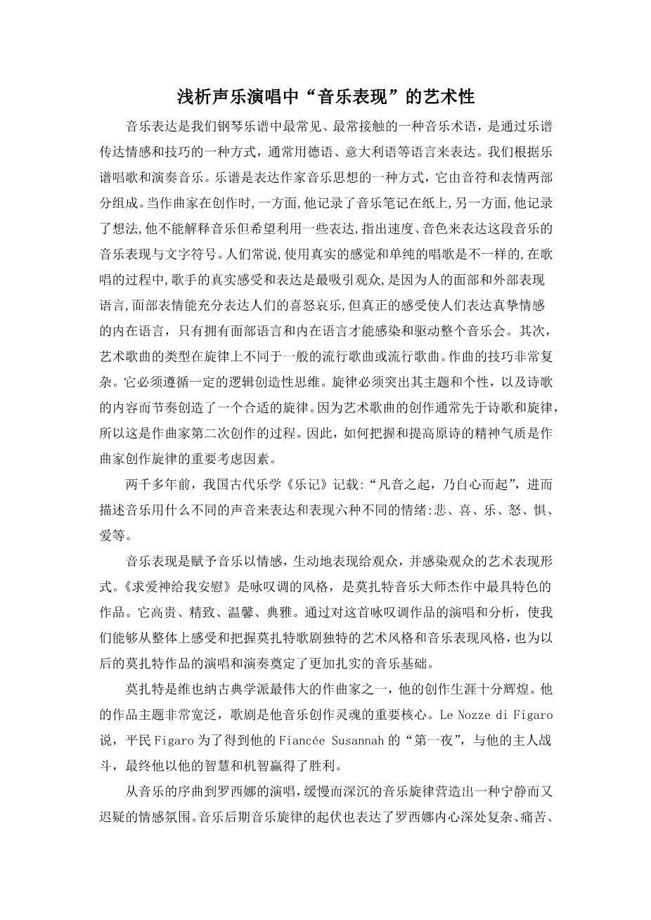 浅析声乐演唱中“音乐表现”的艺术性外文翻译资料